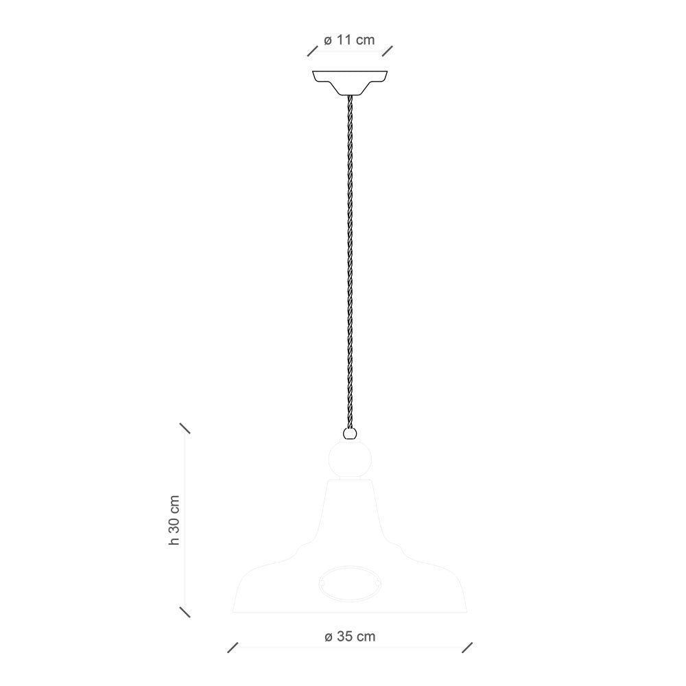 The simple shape of the lampshade is broken by a decorative emblem "Made in Italy," while the ceramic details with their patina tell the story of the material – as if they have gained nobility over the years. The lamp emits pure light, making it a perfect fit for the atmosphere of a functional kitchen, dining room, or cozy living room.