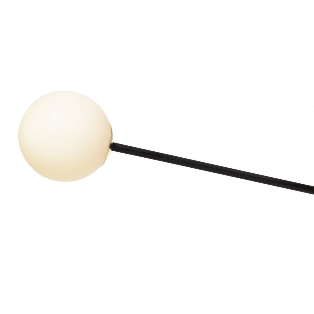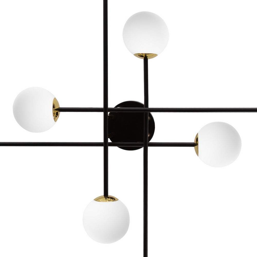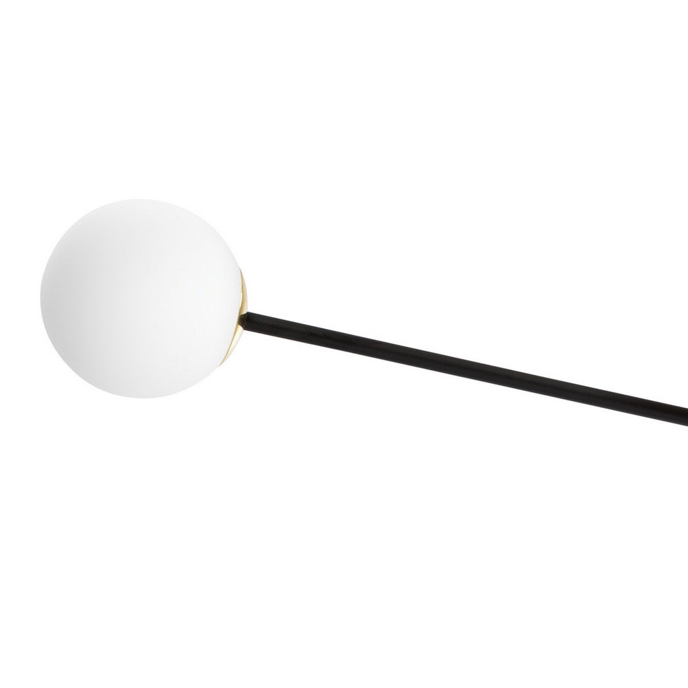 The matte black frame is complemented by details in brushed gold. The metal arms, with a cylindrical cross-section, end in elegant shade holders, and each element measures 65 cm in length, giving the fixture a dynamic and spatial character.