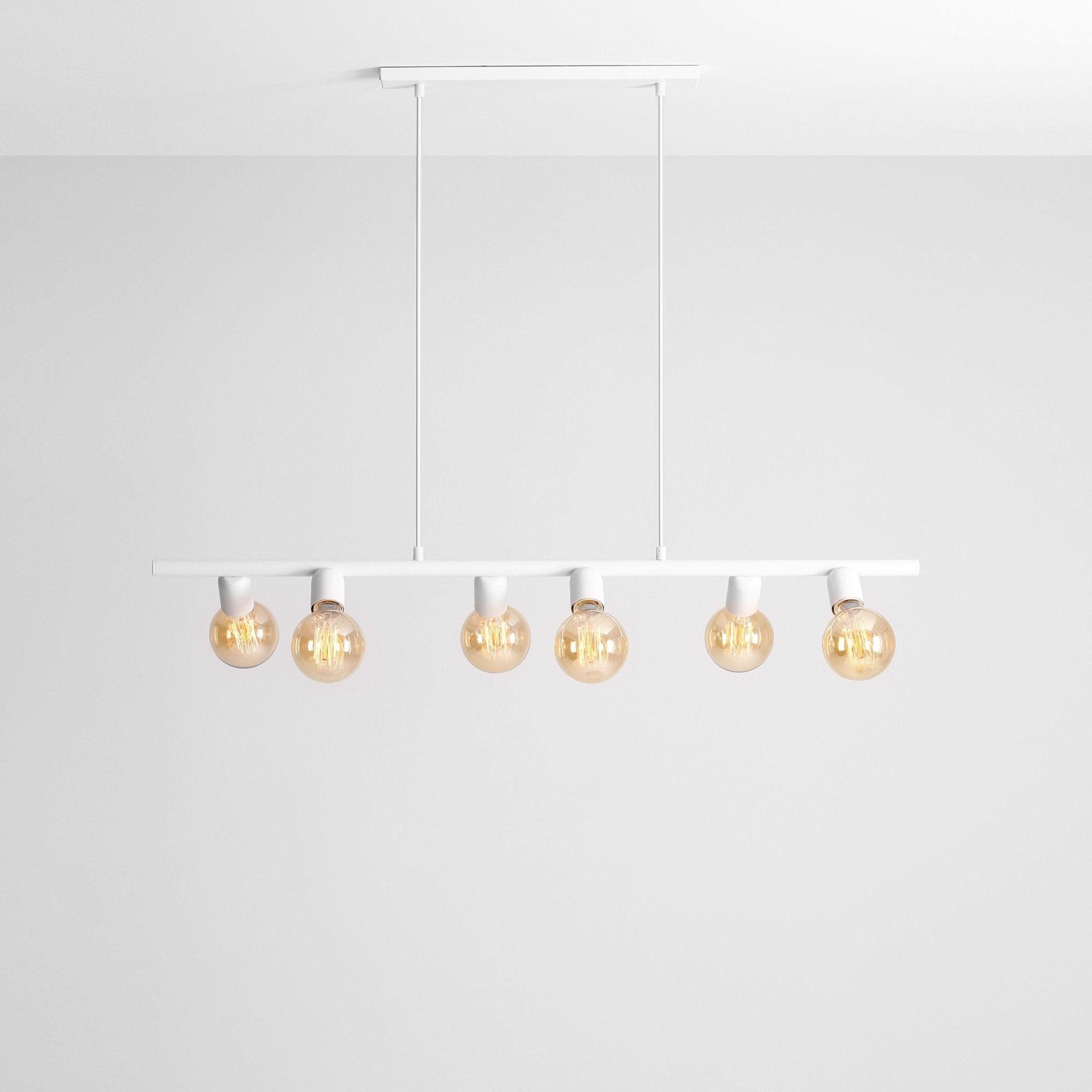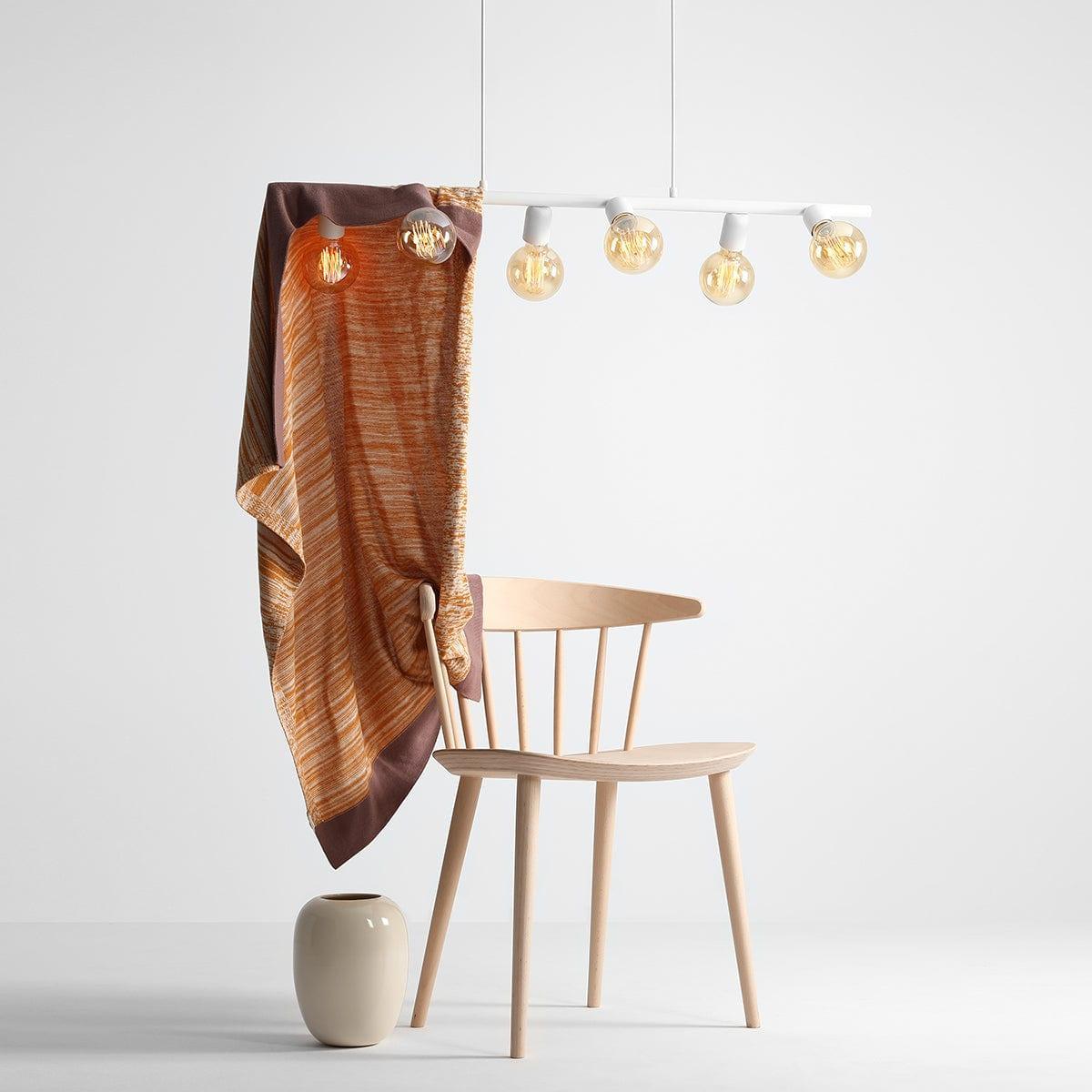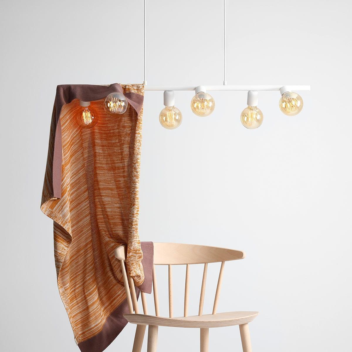 White lamp It will be an interesting element of any room. The classic, white shade makes a biker hanging lamp perfect for almost any interior, starting from the dining room, through the living room, and ending with the bedroom.