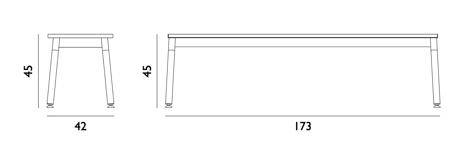 Seat benches It consists of aluminum profiles arranged with small intervals, which not only gives it a modern look, but also allows you to drain water freely, making it an ideal choice for external use. Four subtly bent legs guarantee stability, while giving the whole elegance and balance.