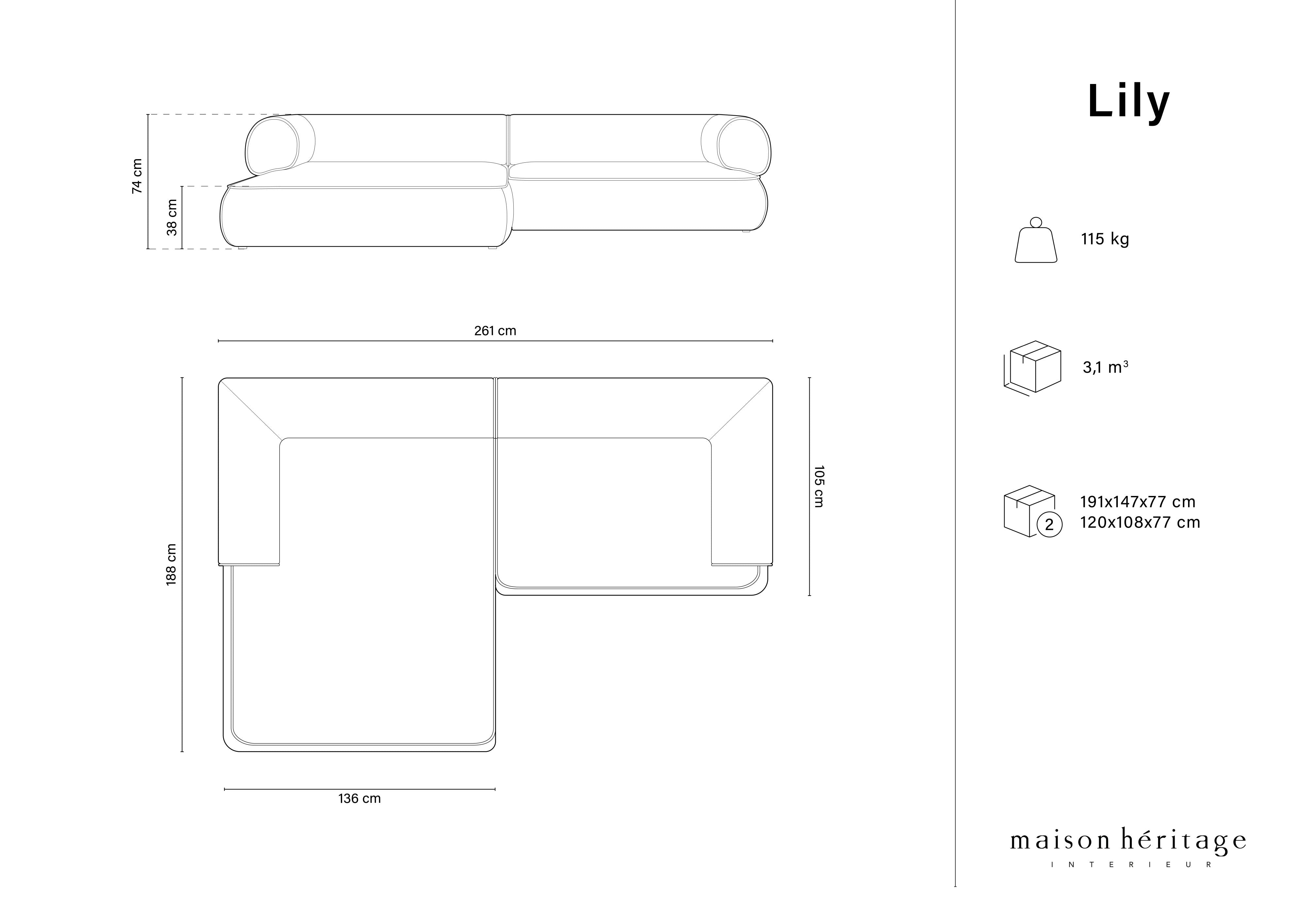 The deep seats are elastic and extremely comfortable. Delicate quilts and stitching emphasize the classic nature of the project. Thanks to the low and spreading figure corner Lily will introduce a little coziness and warmth into the interior. The collection includes various combinations of sofas and corners, as well as chaiselong and large pouf, thanks to which you can create a unique decor.