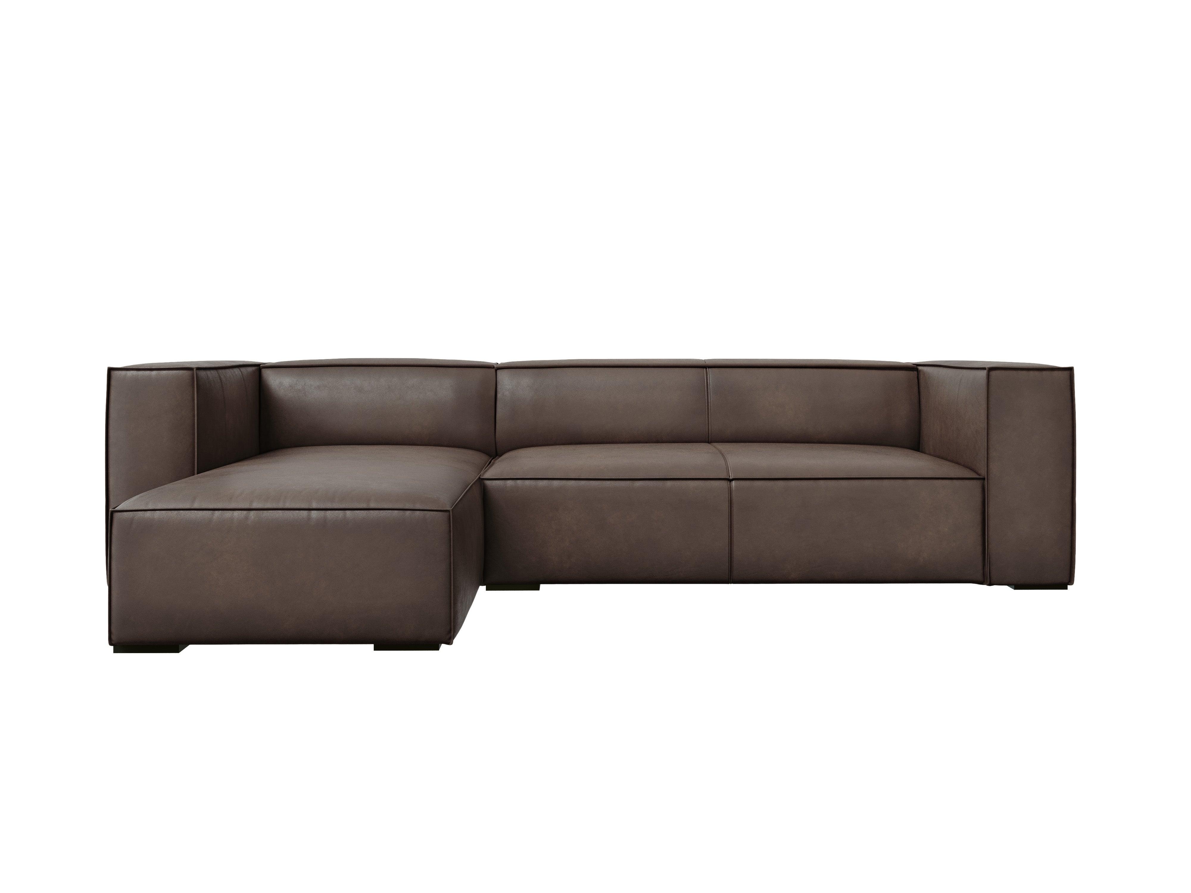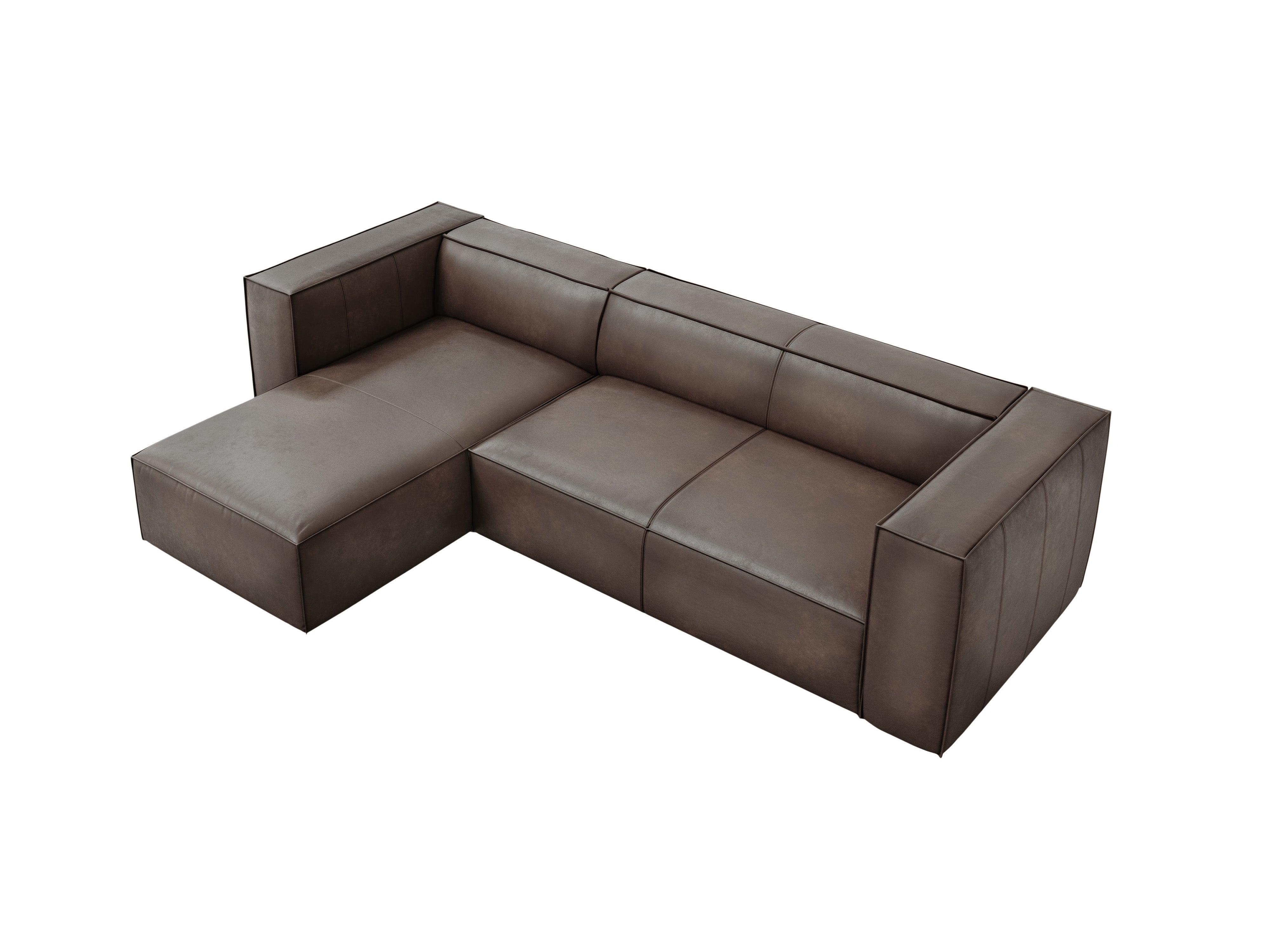 Leather left -hand corner Madame is the perfect combination of elegance with a timeless form. The geometric, slightly raw block is great for Modern Classic interiors with a hint of modernity. Decorative stitching on the leather upholstery add an unusual character. Wooden beech wood legs not only look beautiful, but also form a solid base.