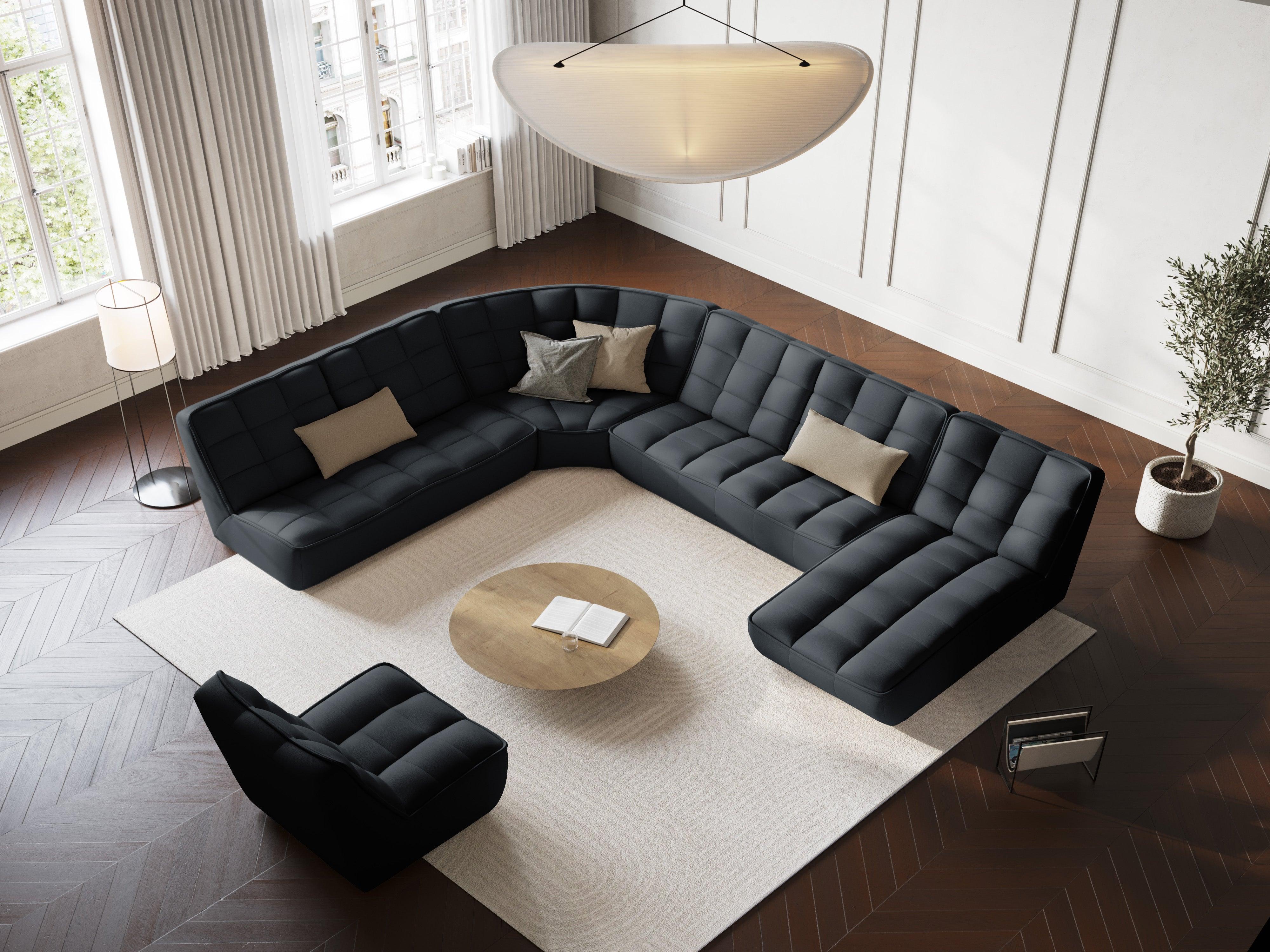 Leather corner for eight people Moni defines functionality and convenience in combination with modern design. Stylish quilting and the original block are great for both an elegant living room and a modern office. The seat and back line is arched and has a slightly profiled cavity, offering extraordinary comfort of use.