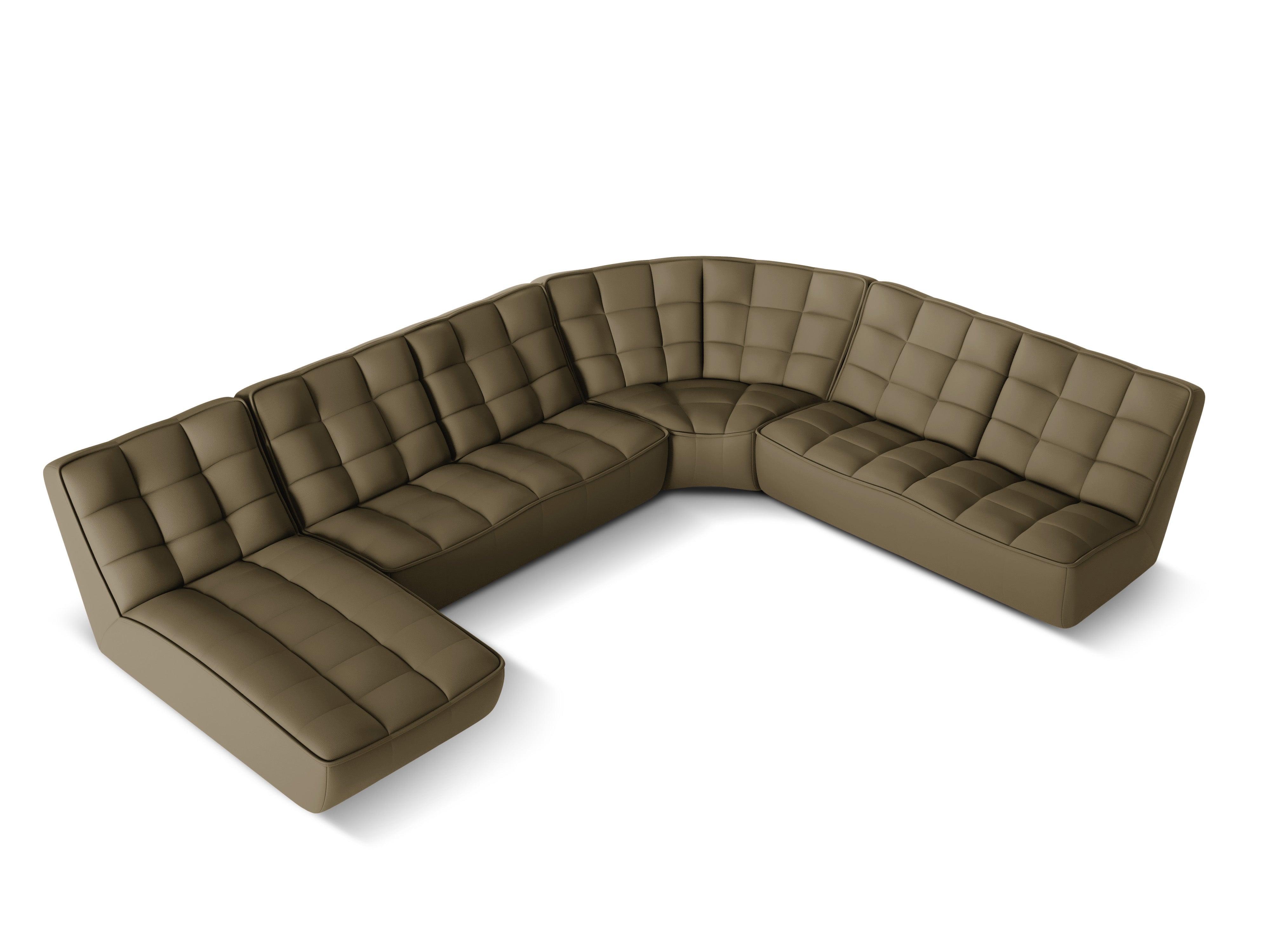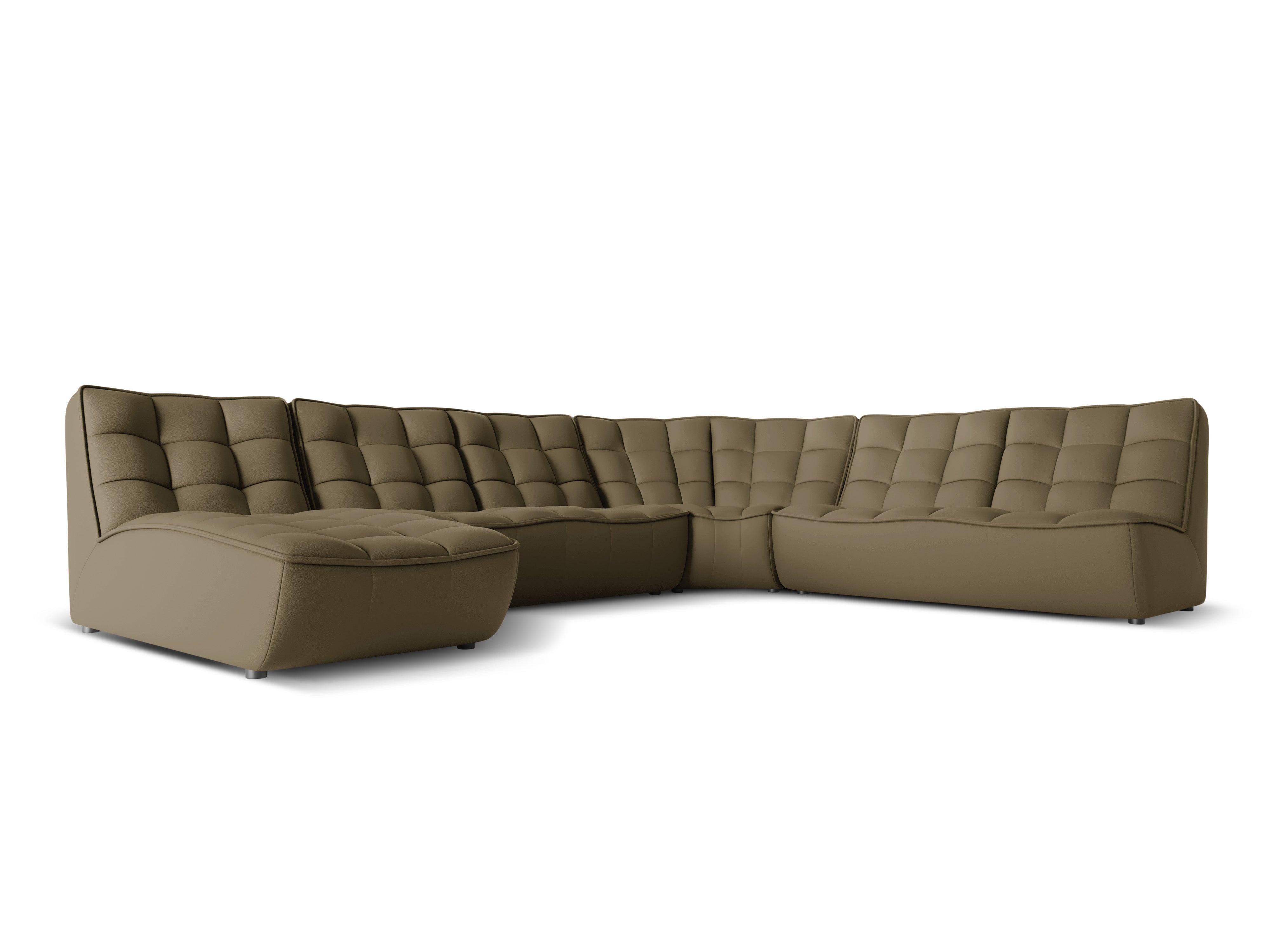 Leather corner for eight people Moni defines functionality and convenience in combination with modern design. Stylish quilting and the original block are great for both an elegant living room and a modern office. The seat and back line is arched and has a slightly profiled cavity, offering extraordinary comfort of use.