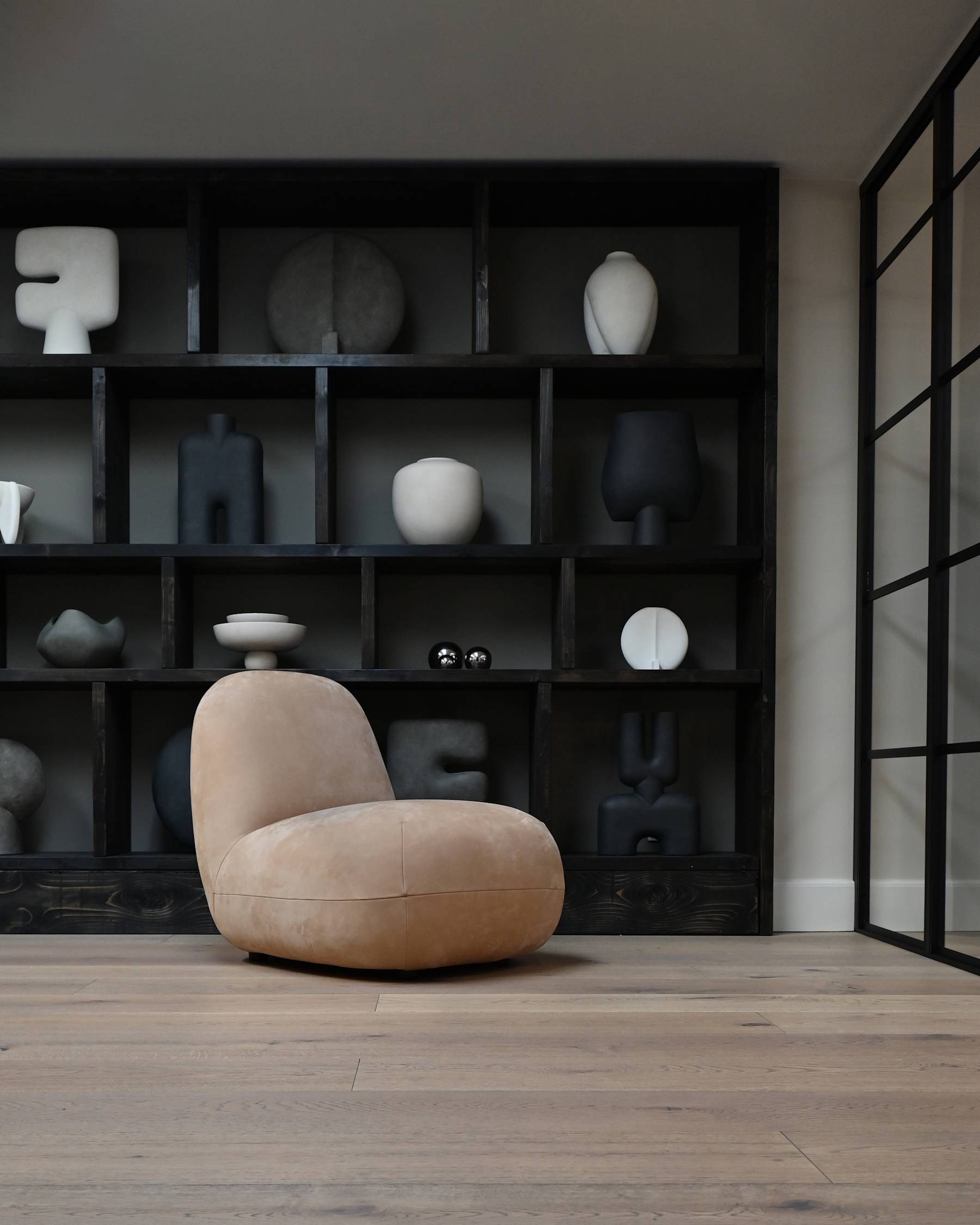 The Toe Flat is a tribute to the futuristic design of the seventies and the Space Age aesthetic, offering a striking form and luxurious seating comfort. The armchair stands out with its sculptural approach to furniture design, where soft, flowing lines embrace the body, providing a sense of coziness and lightness. Its open form encourages relaxed use and a natural position, making it the perfect spot for conversation and relaxation.