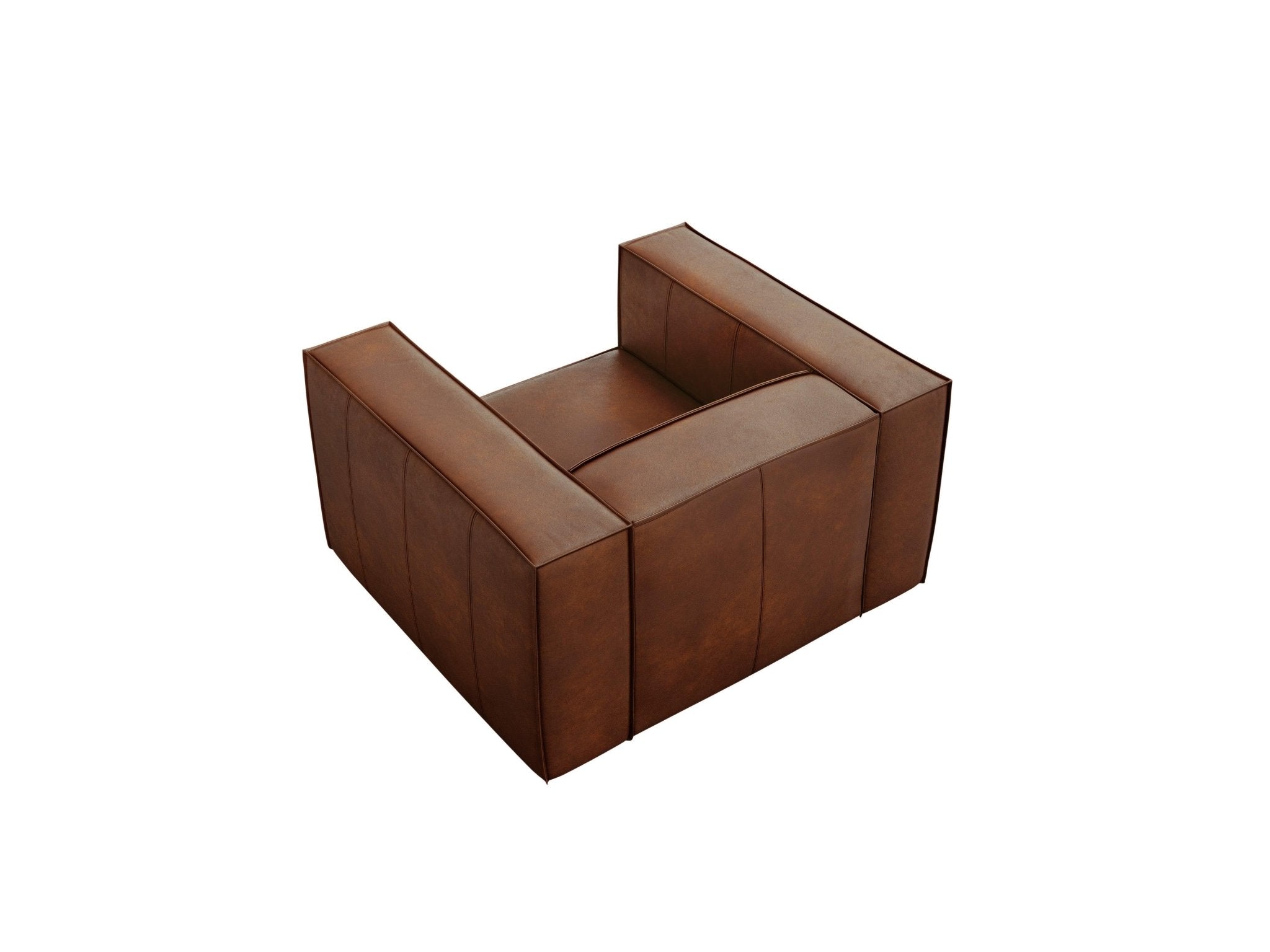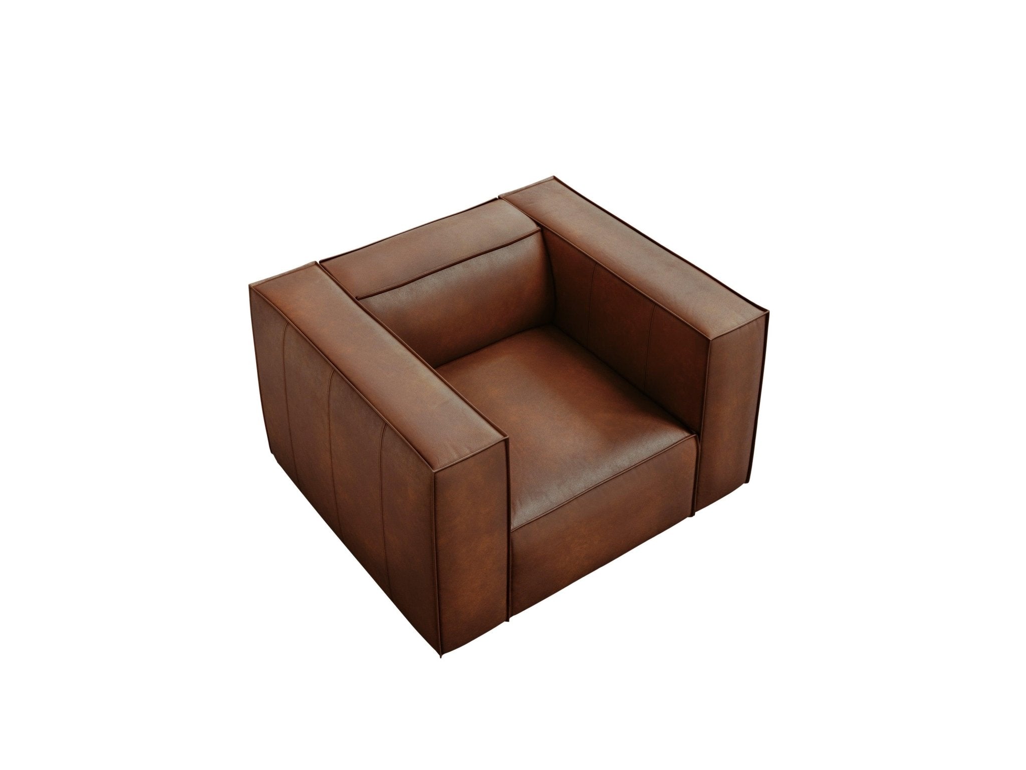 Leather armchair Madame is the perfect combination of elegance with a timeless form. The geometric, slightly raw block is great for Modern Classic interiors with a hint of modernity. Decorative stitching on the leather upholstery add an unusual character. Wooden beech wood legs not only look beautiful, but also form a solid base.