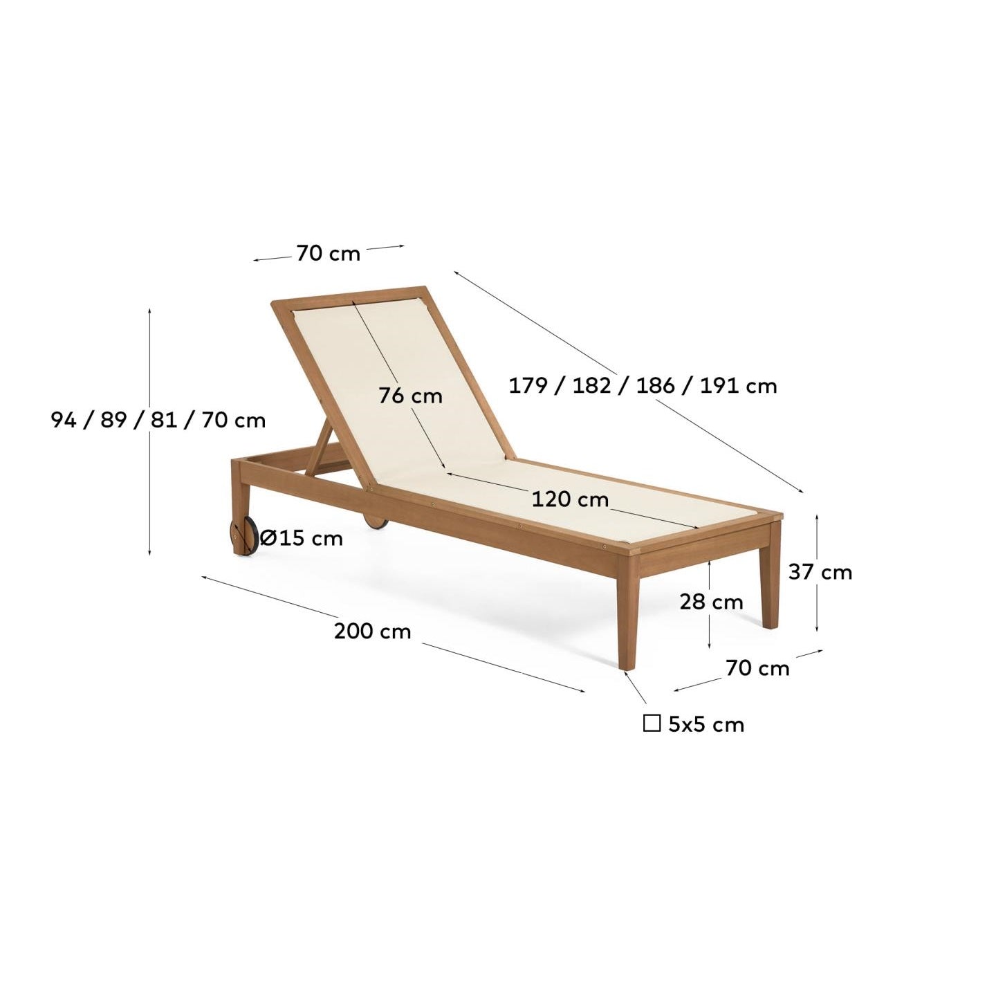Not only functionality makes beige deckchair Caterin exceptional - it was made of solid, ecological eucalyptus wood, which not only gives it elegance, but also is environmentally friendly. Thanks to this, you can enjoy relaxation in the fresh air, being sure that you take care of our planet.