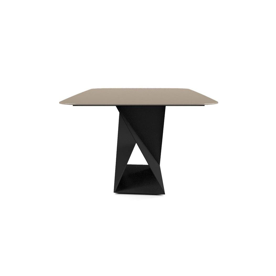 The table base is as surprising as its countertop. Made of elegant, polished steel, it creates a contrast to the liquidity and delicacy of the countertop. Its sharp edges and precisely measured proportions add the Folds table character and strength.