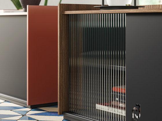 By adding or removing supports and mixing various accessories and details, such as glass, metal, wood and color variants, gray Cabinet Pixi becomes an adaptive furniture that changes with your needs and imagination.
