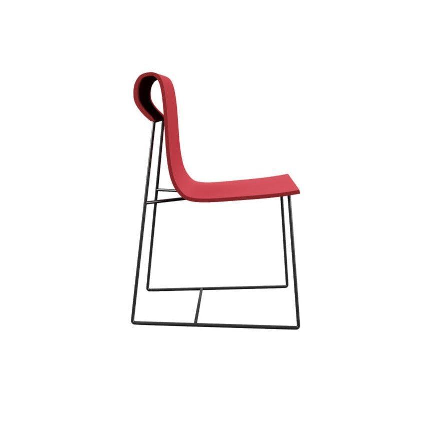 Loose Curl chair In red, it is a combination of dynamic aesthetics and contemporary design concept, inspiring the classic shapes of the Ionian capital, one of the fundamental elements of the architecture of ancient Greece.