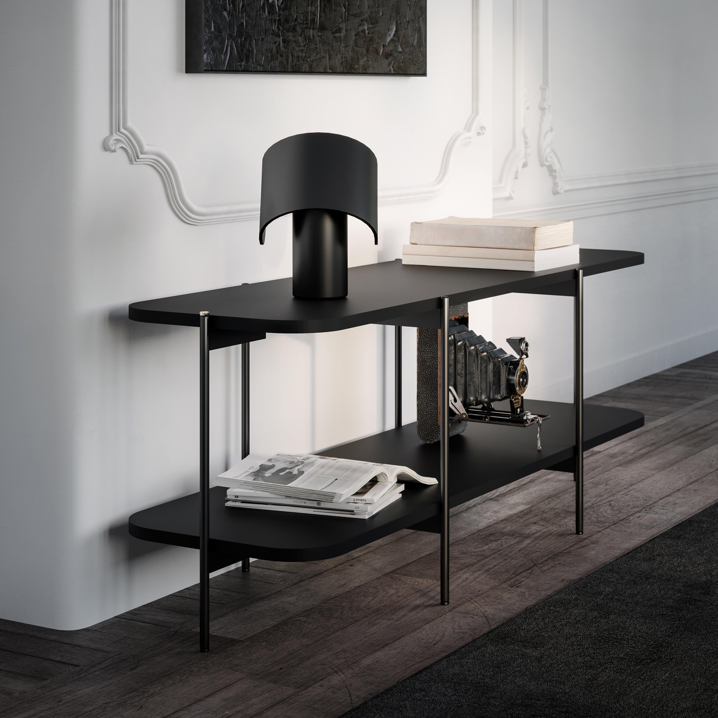 In the version with two shelves, the bookcase transforms into an essential element, which is complemented by any interior design with elegant discretion.
