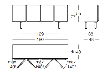 Tacito TV cabinet is a blend of sophisticated design and functionality, making it perfect for both a modern living room and an elegant office. Its minimalist shape is enhanced by felt-covered doors in contrasting colors, giving the piece a distinctive yet cozy character.