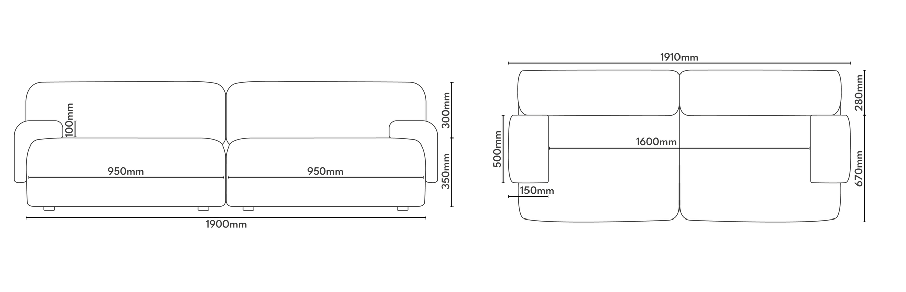 Modular 2-Seater Sofa UMI Beige
