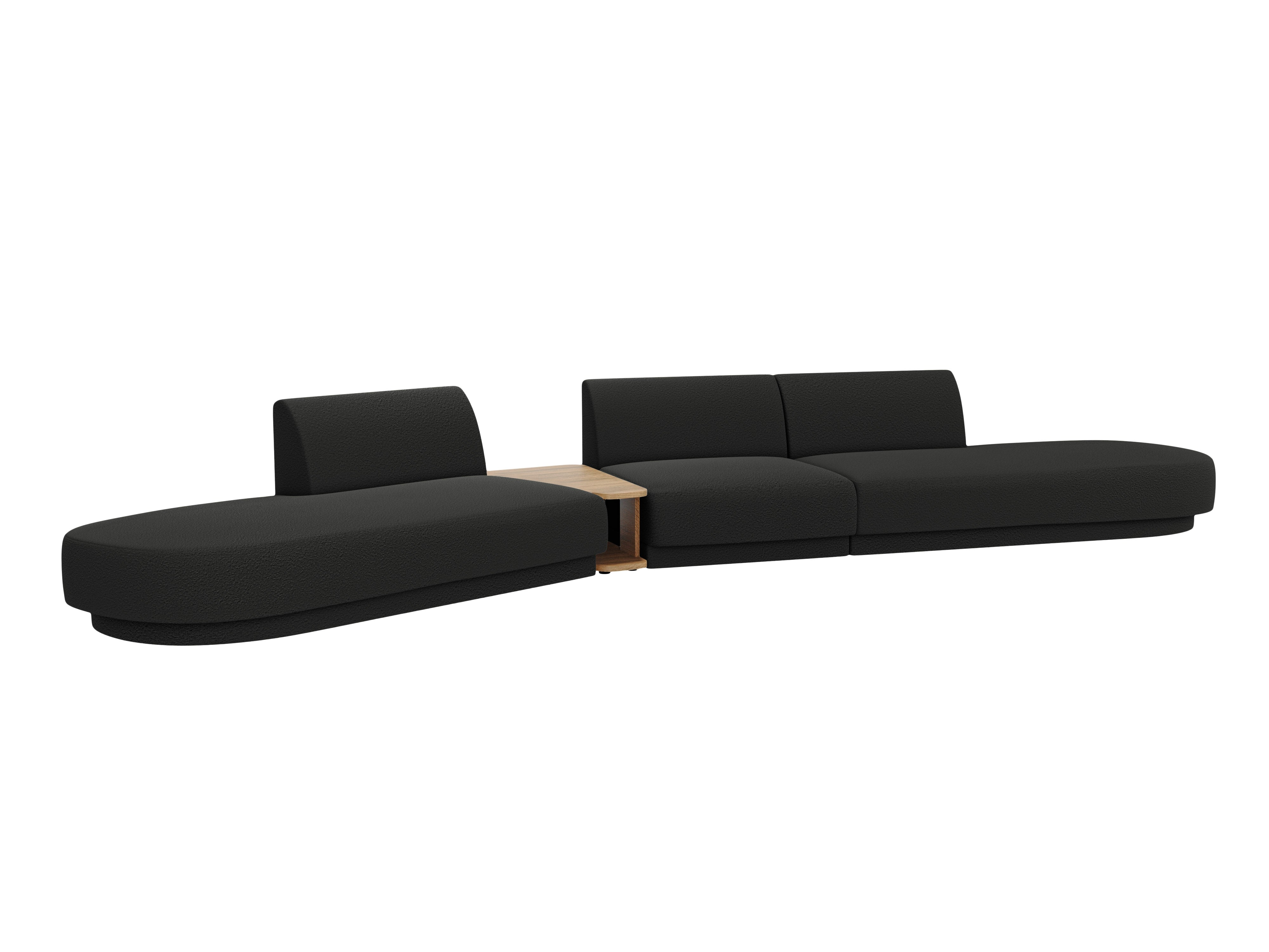 Left-sided modular sofa with table for 5 people MILEY black boucle