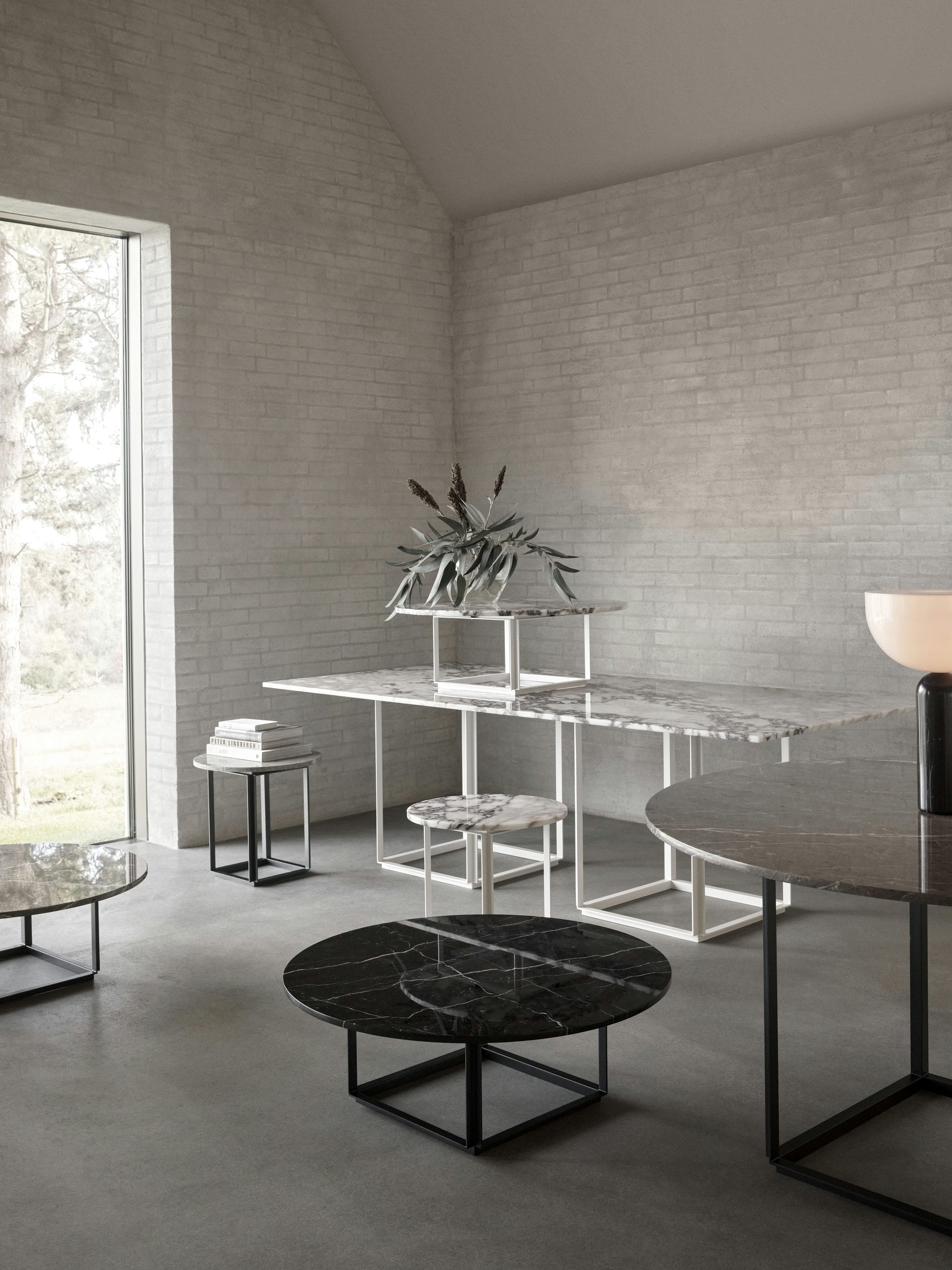 The top made of white marble is distinguished by a natural, unique stone drawing, adding a luxurious character to the interior. The white, steel base introduces visual lightness and ensures stability, while emphasizing the minimalist elegance of the table. Thanks to the compact form, Florence is ideal as an auxiliary table, a decoration platform or a functional element at the sofa or armchair.