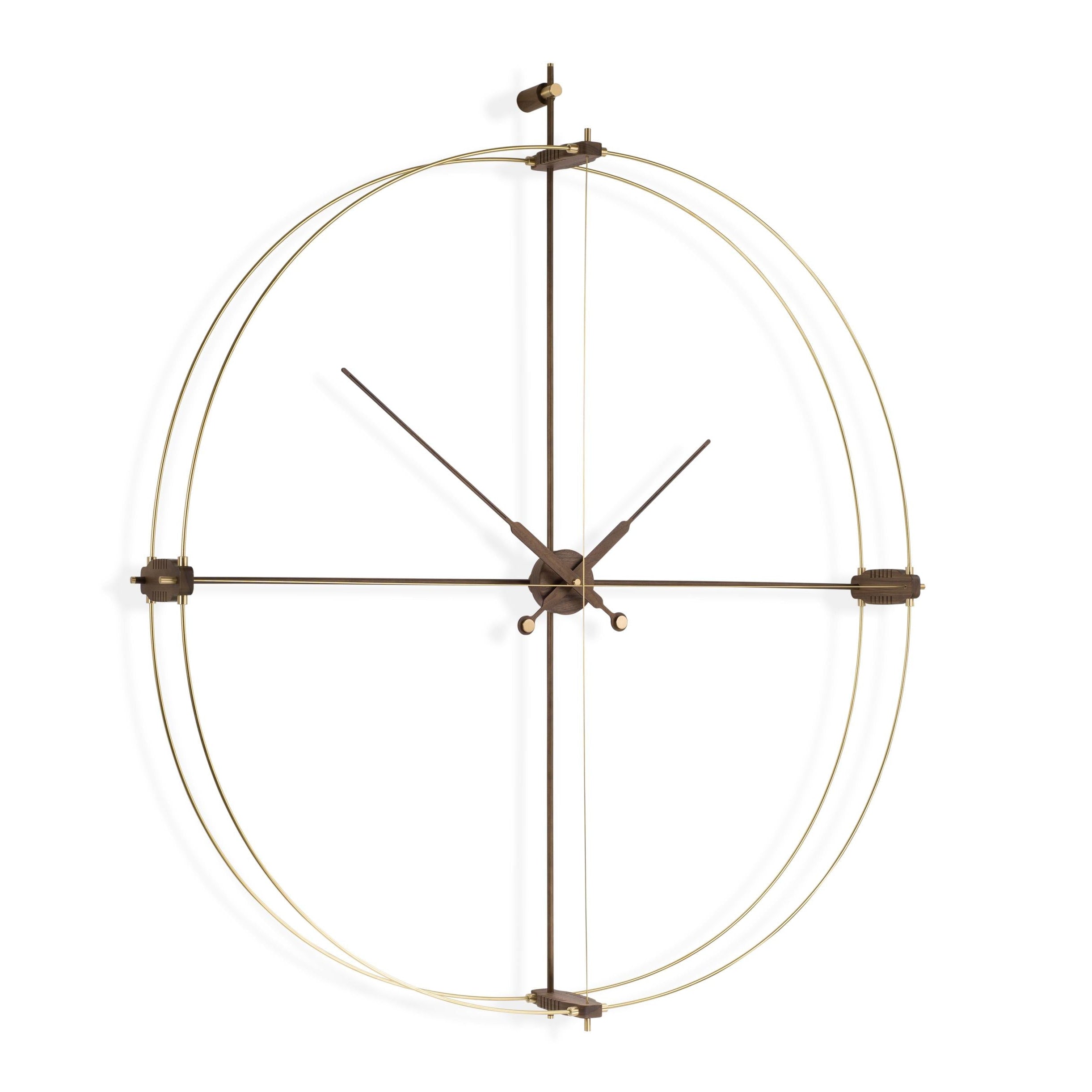 Wall Clock DOS PUNTOS PREMIUM walnut wood with brass finish