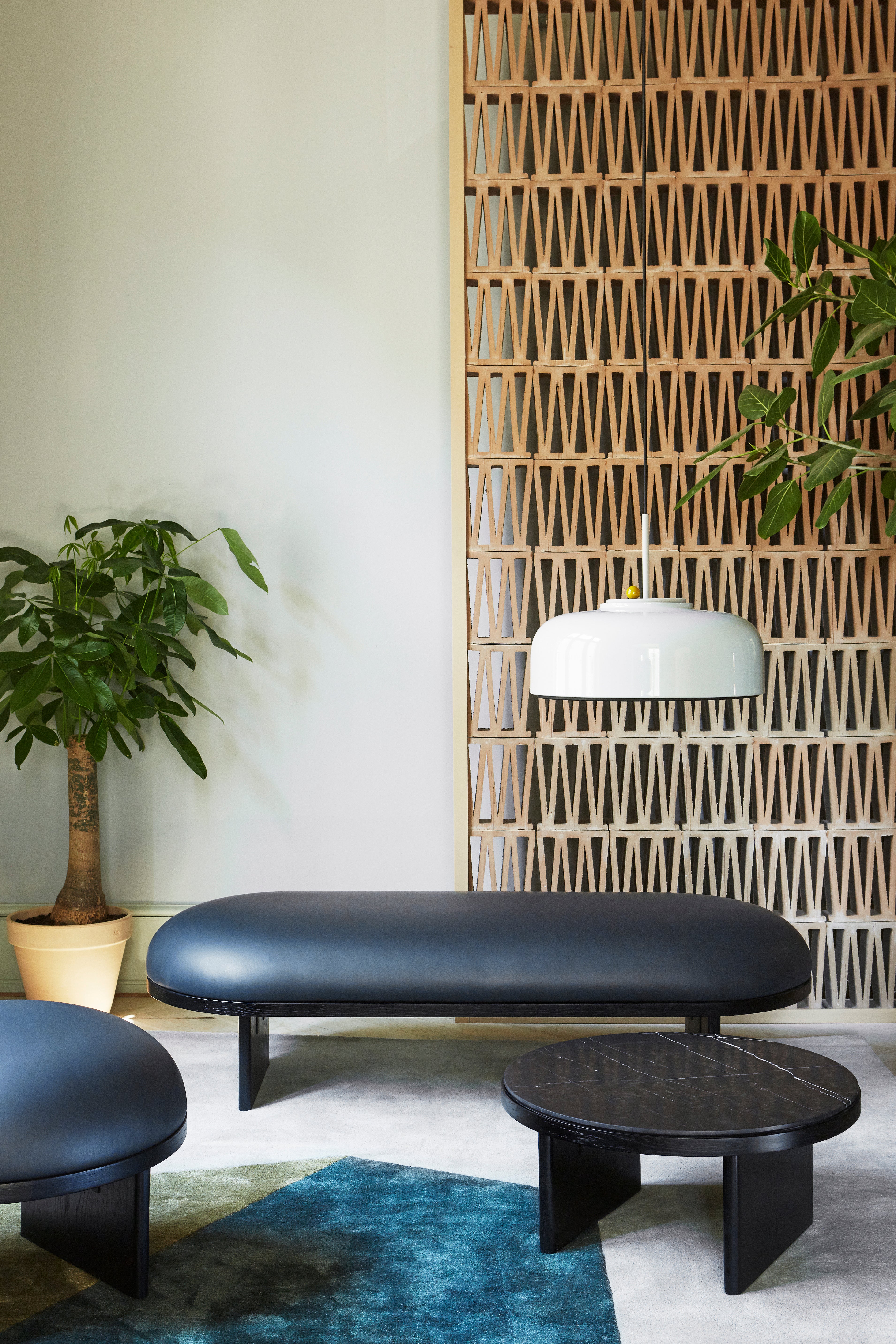 Coffee table Anza, whose name in Japanese means "comfortable seating," is part of a collection that includes poufs, benches, and tables designed to create friendly spaces for both home and public settings. Its elegant form and careful craftsmanship make it a perfect fit for modern interior arrangements, adding lightness and style.