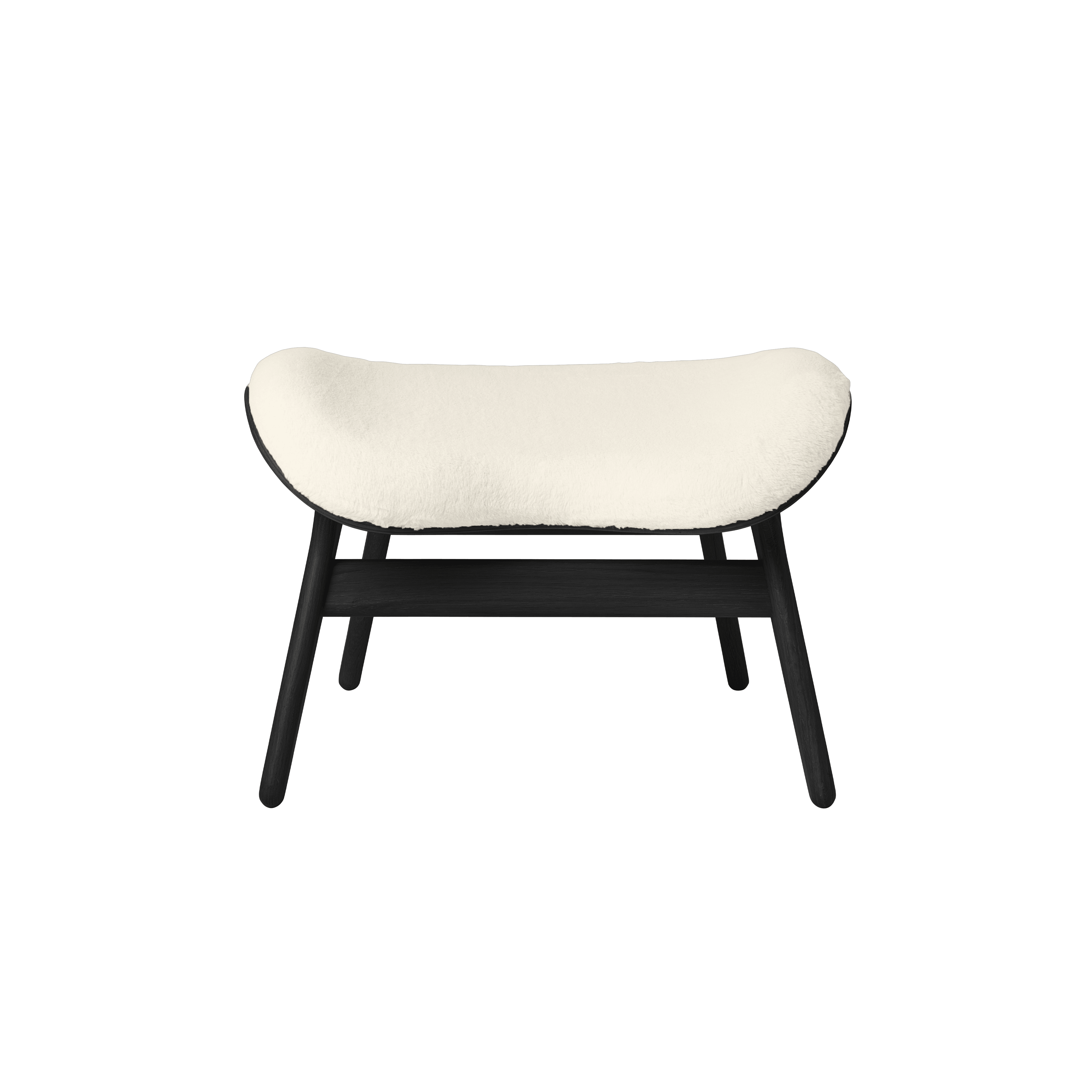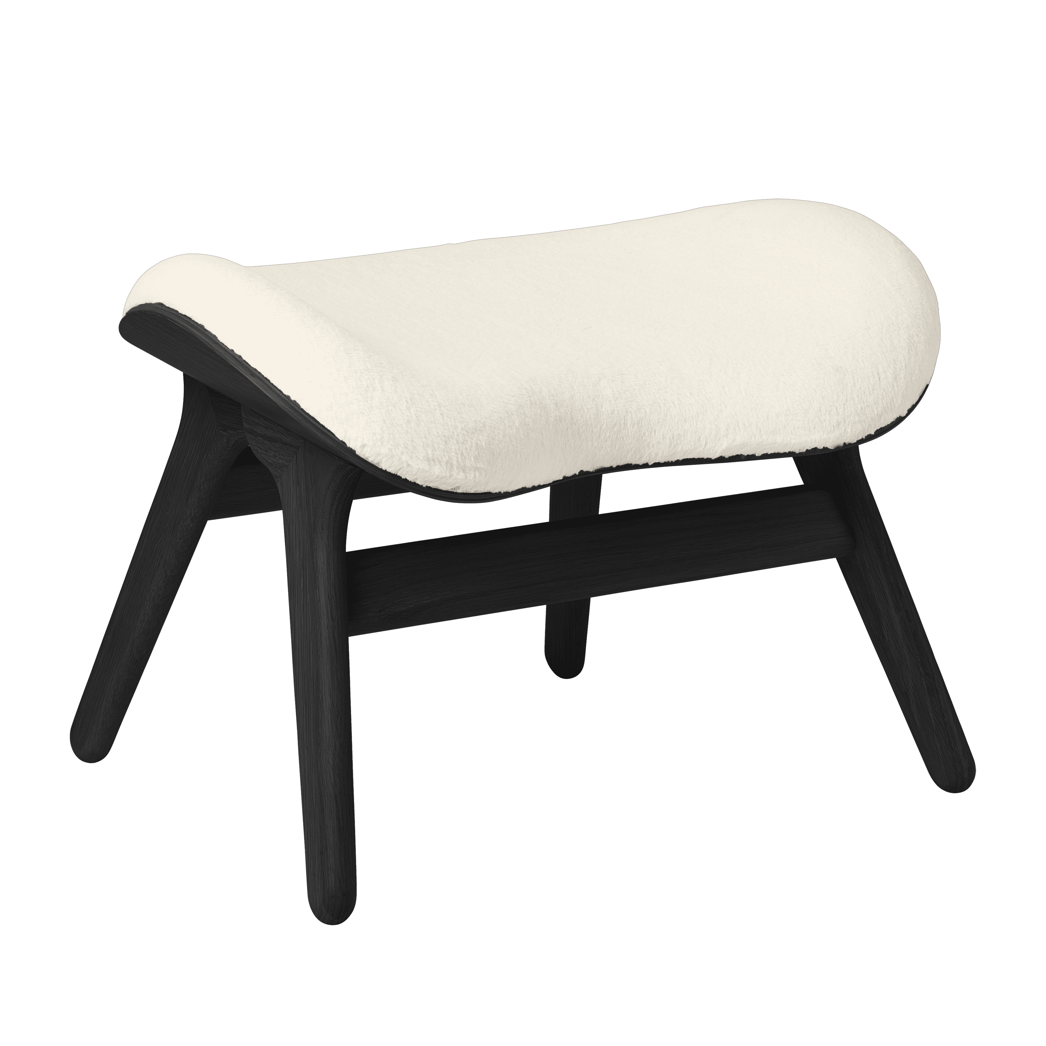 Conversation footrest. Creamy stuffed plush with a black base