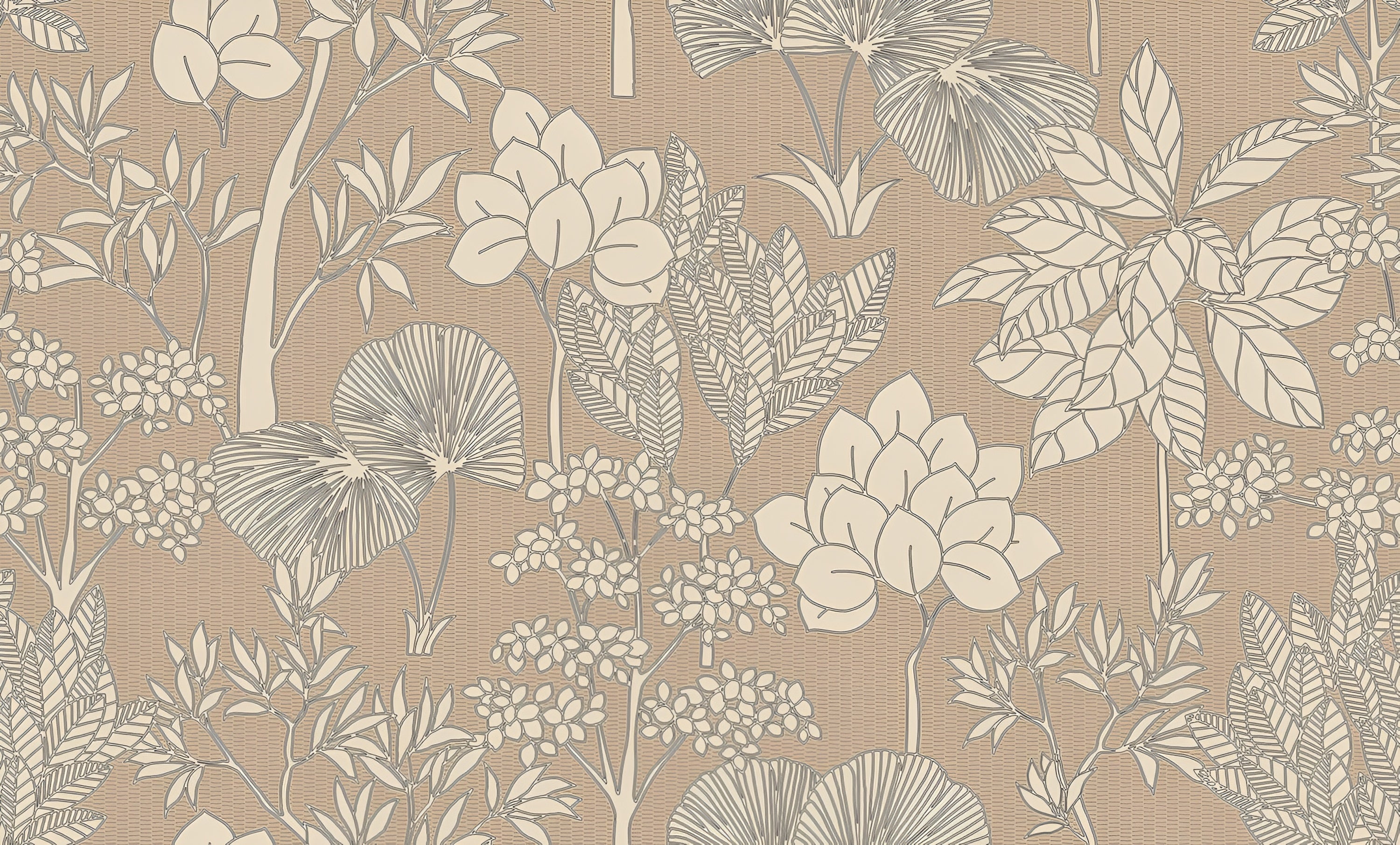 Tapeta z roślinnym wzorem INARA - BEIGE/DORÉ ciemnobeżowy