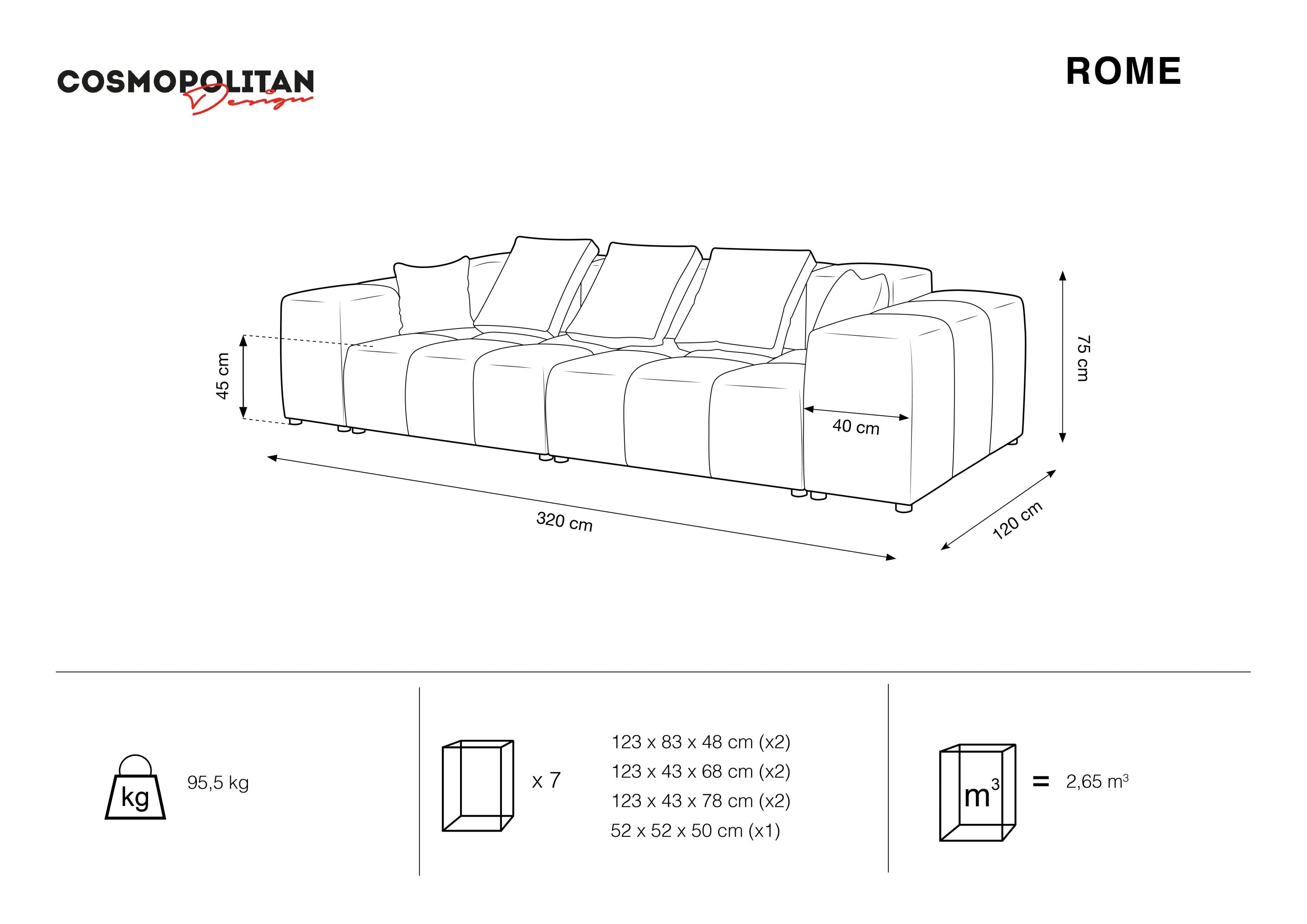 Rome is an amazing combination of elegance, comfort and modernity. The beautiful Sofa is beautiful, luxurious fabric, and its unique color creates countless arrangement possibilities. The sofa not only looks great, but is also very pleasant to the touch and resistant to abrasion.