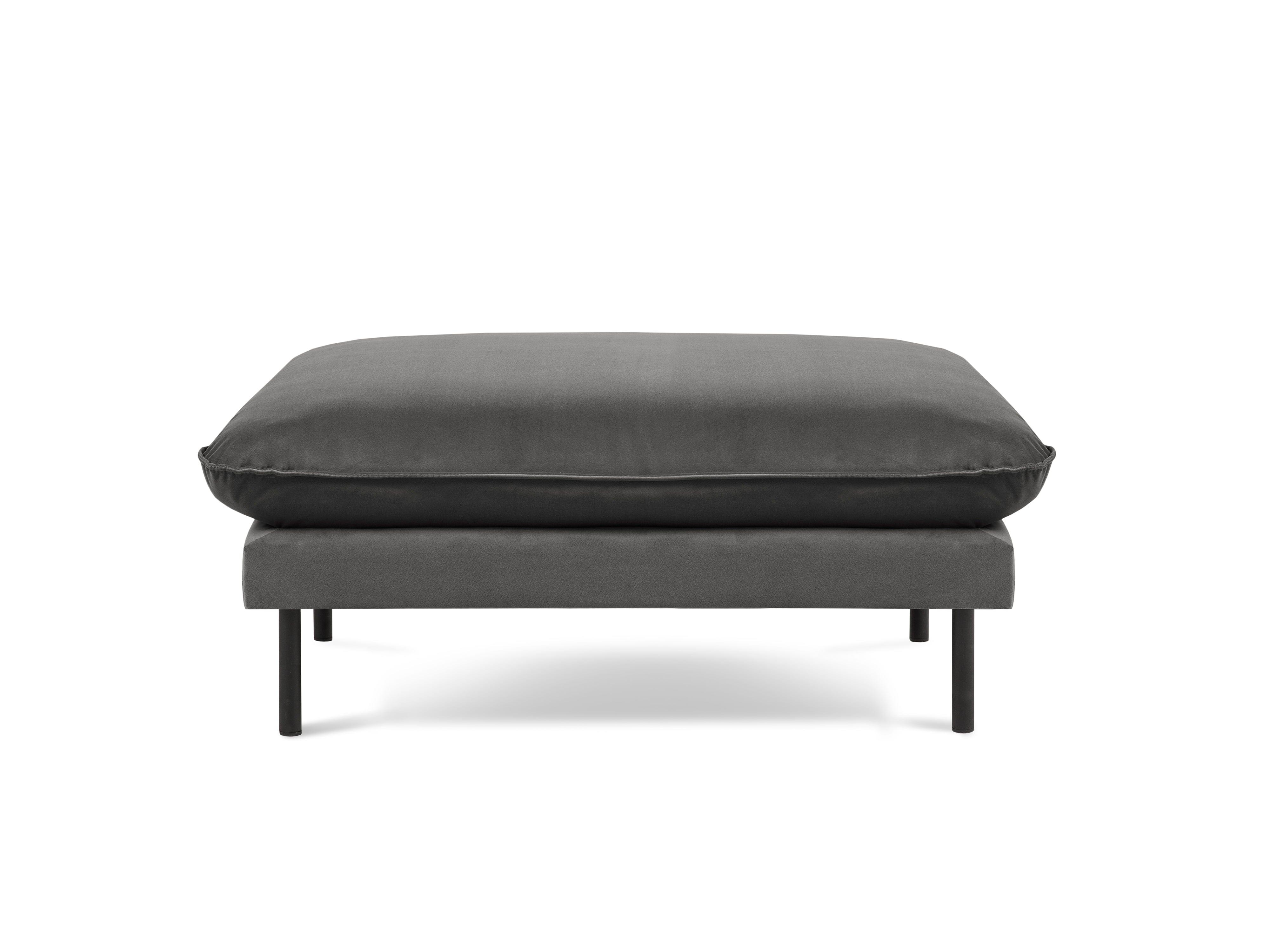 Vienna Dark gray velvet pouf with a black base