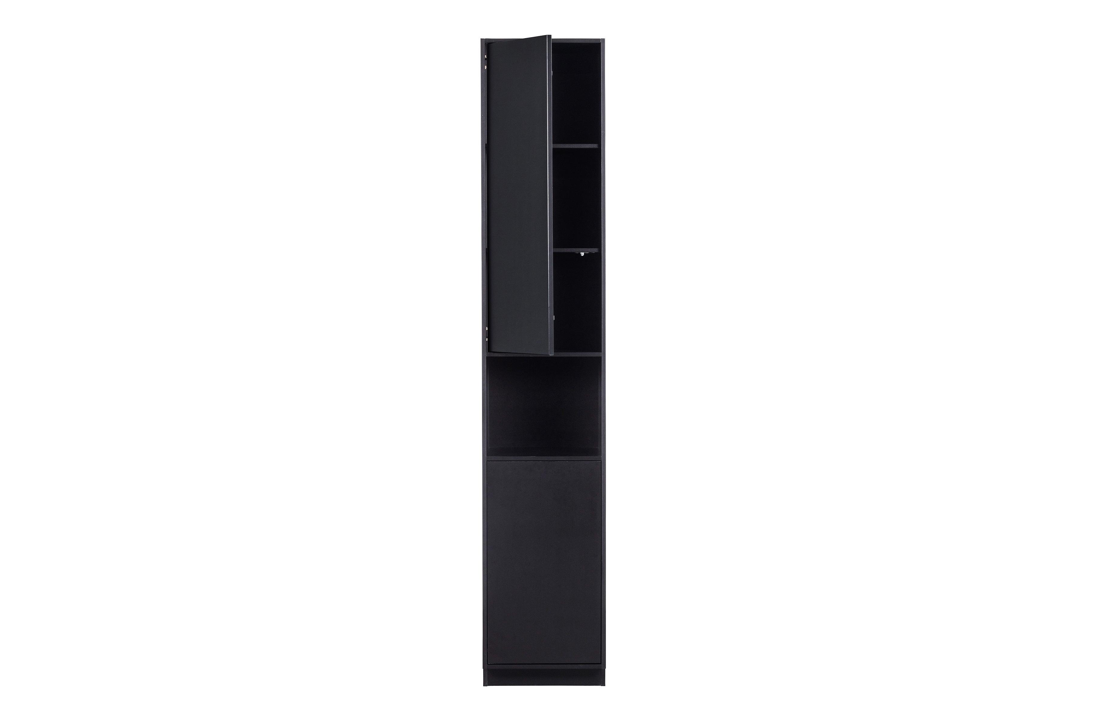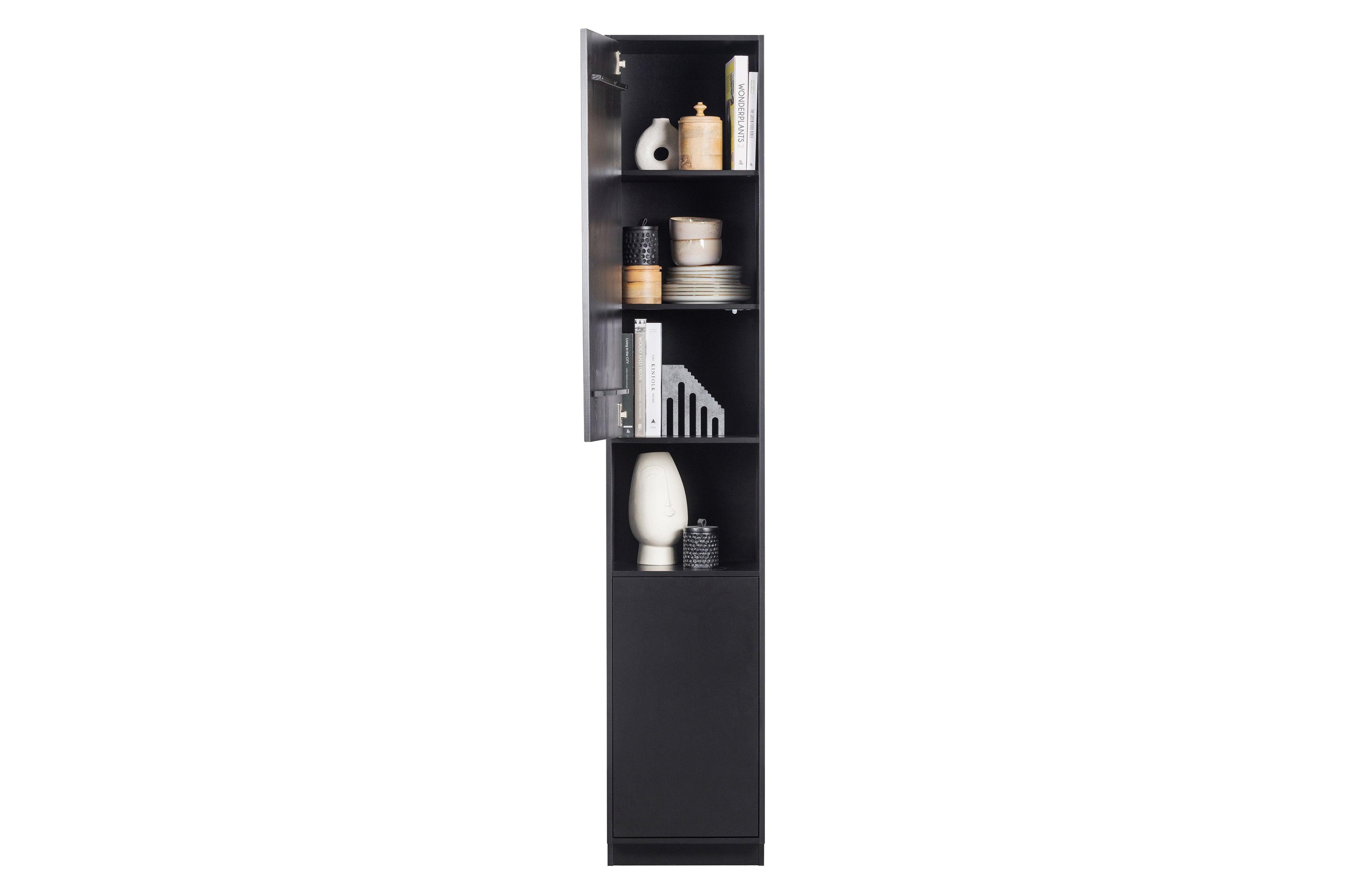 Narrow bookcase with finca black door