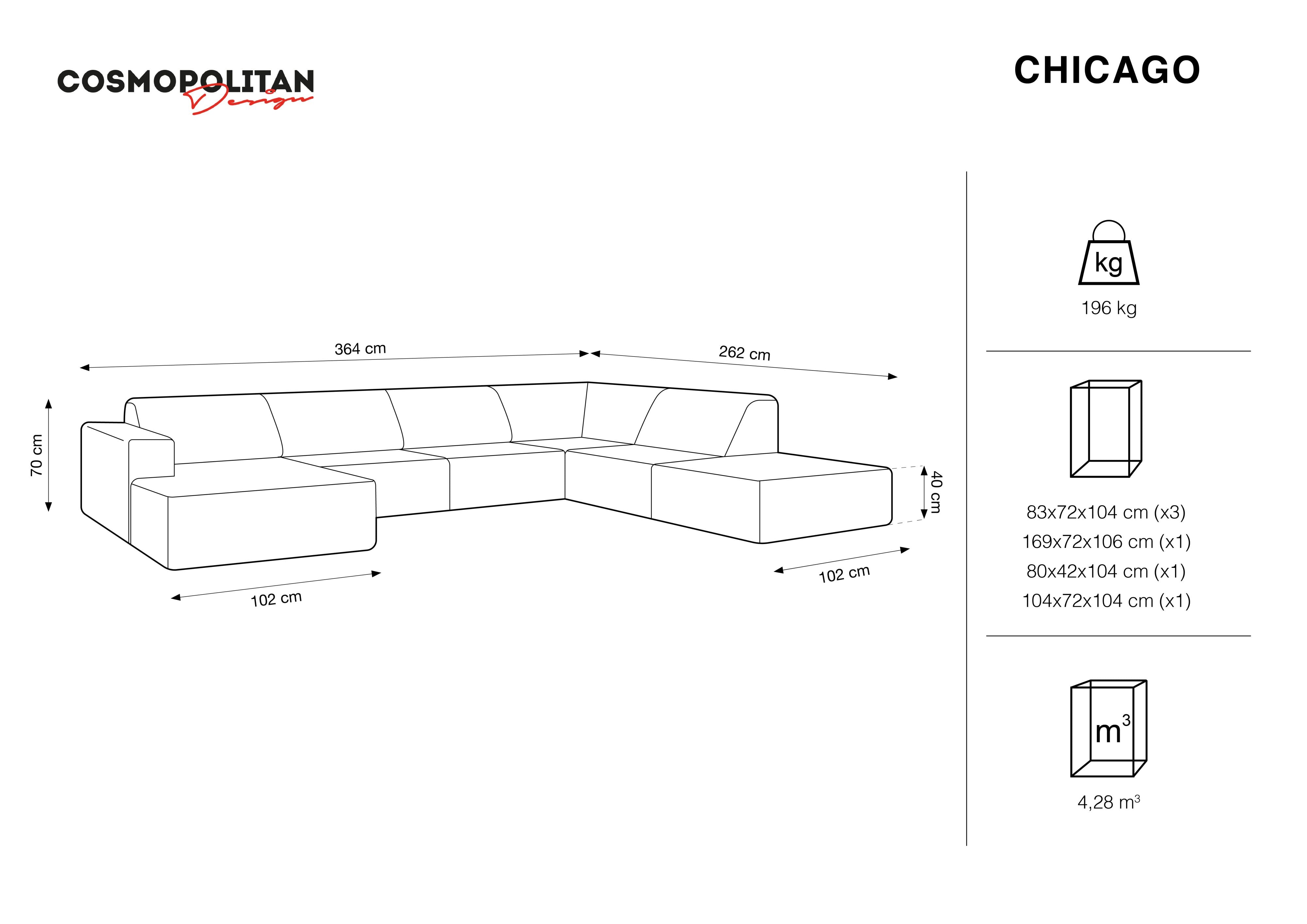 Narożnik w kształcie U aksamitny prawostronny CHICAGO jasnobeżowy Cosmopolitan Design    Eye on Design