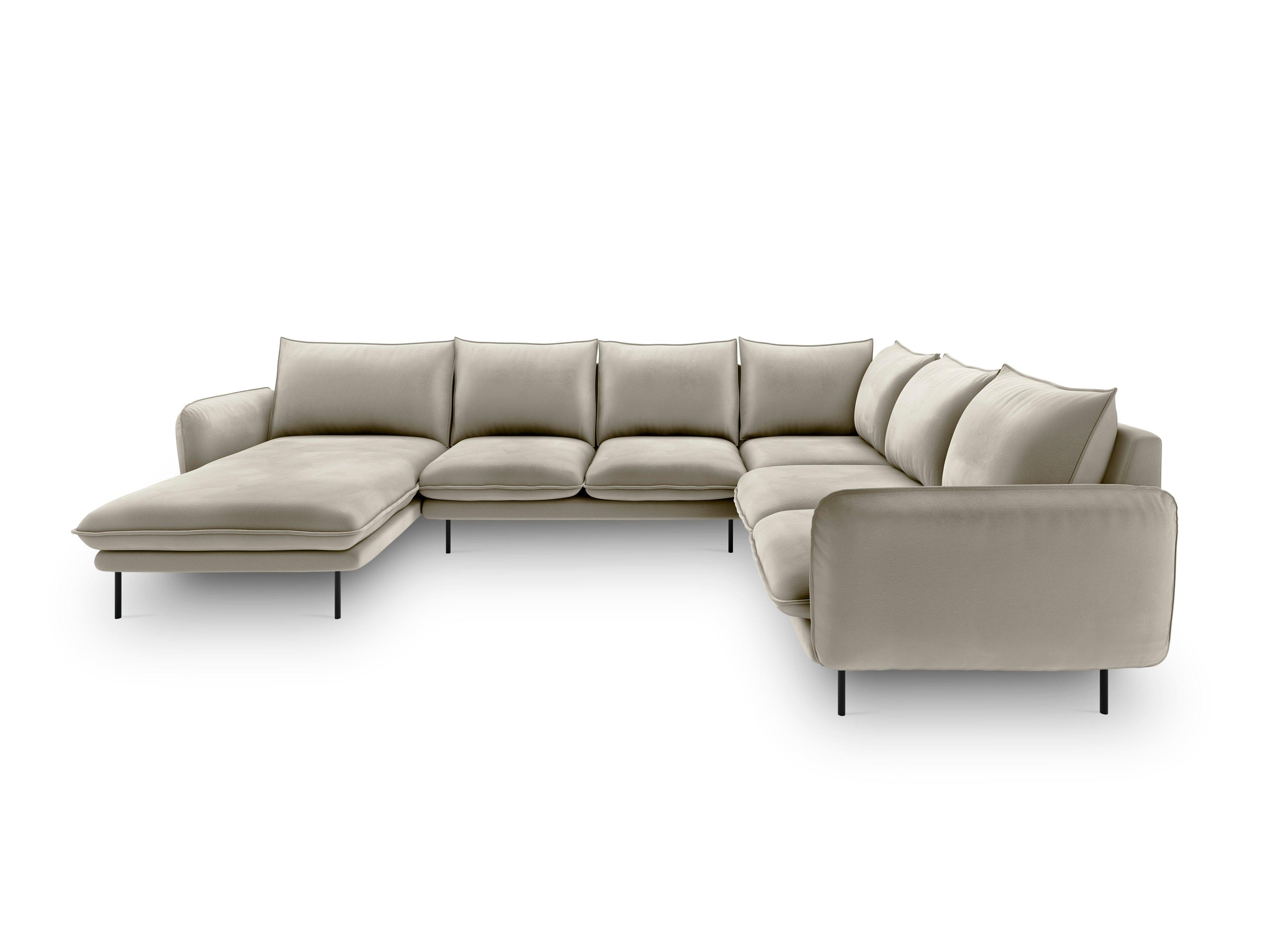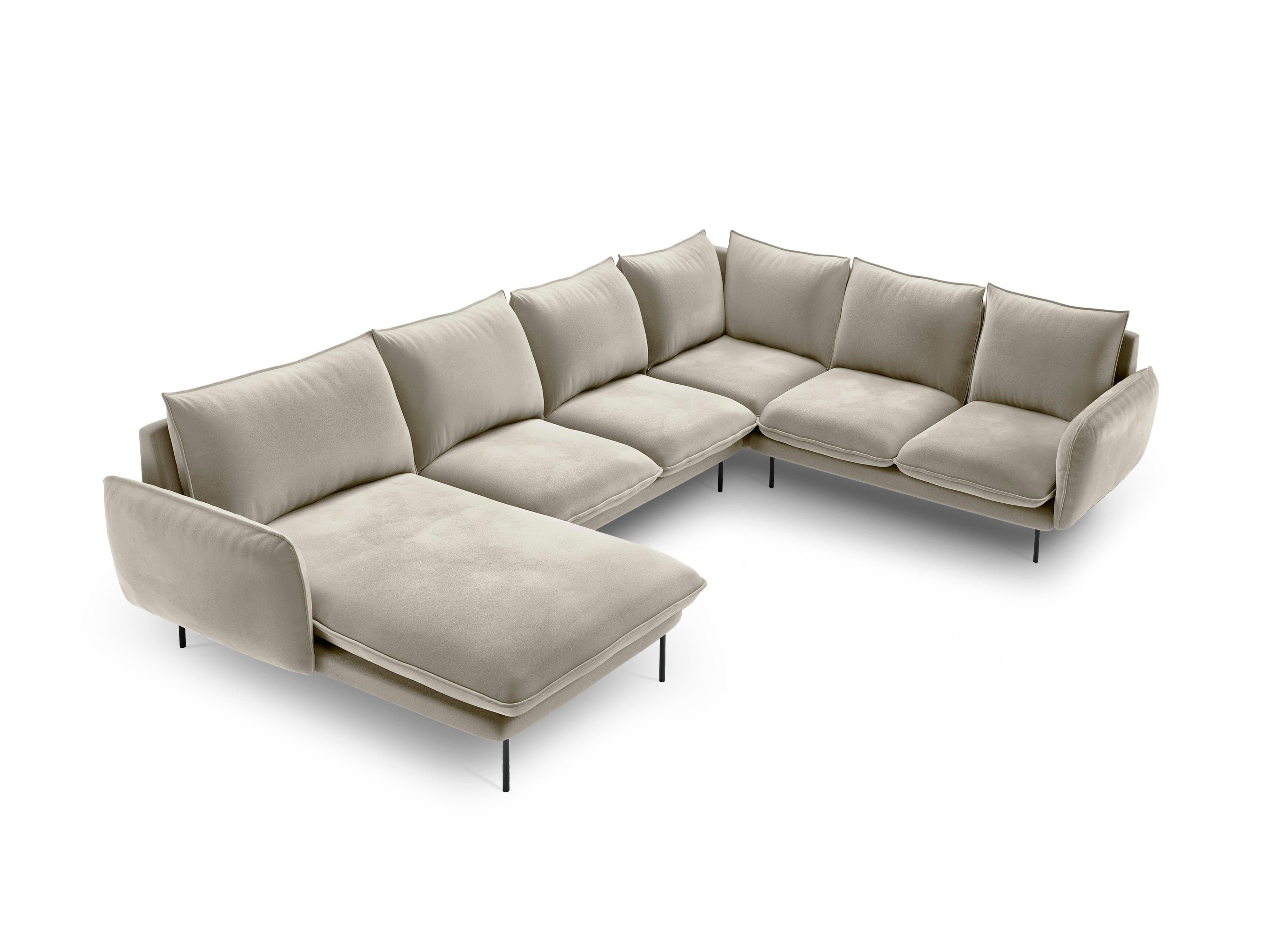 Right -sided corner velvet panoramic Vienna Beige with a black base