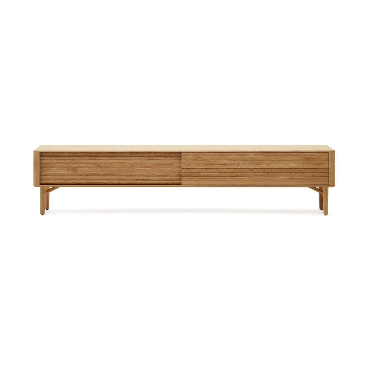 Unique design coming out of solid wood and oak veneer RTV cabinets Lenon will surprise with rounded edges and a delicate relief on the door, creating a unique texture that tempts to look close to every detail. Practicality is another element that distinguishes this oak cabinet. Two pairs of sliding doors not only give an elegant character, but also make the use of RTV devices even more comfortable.