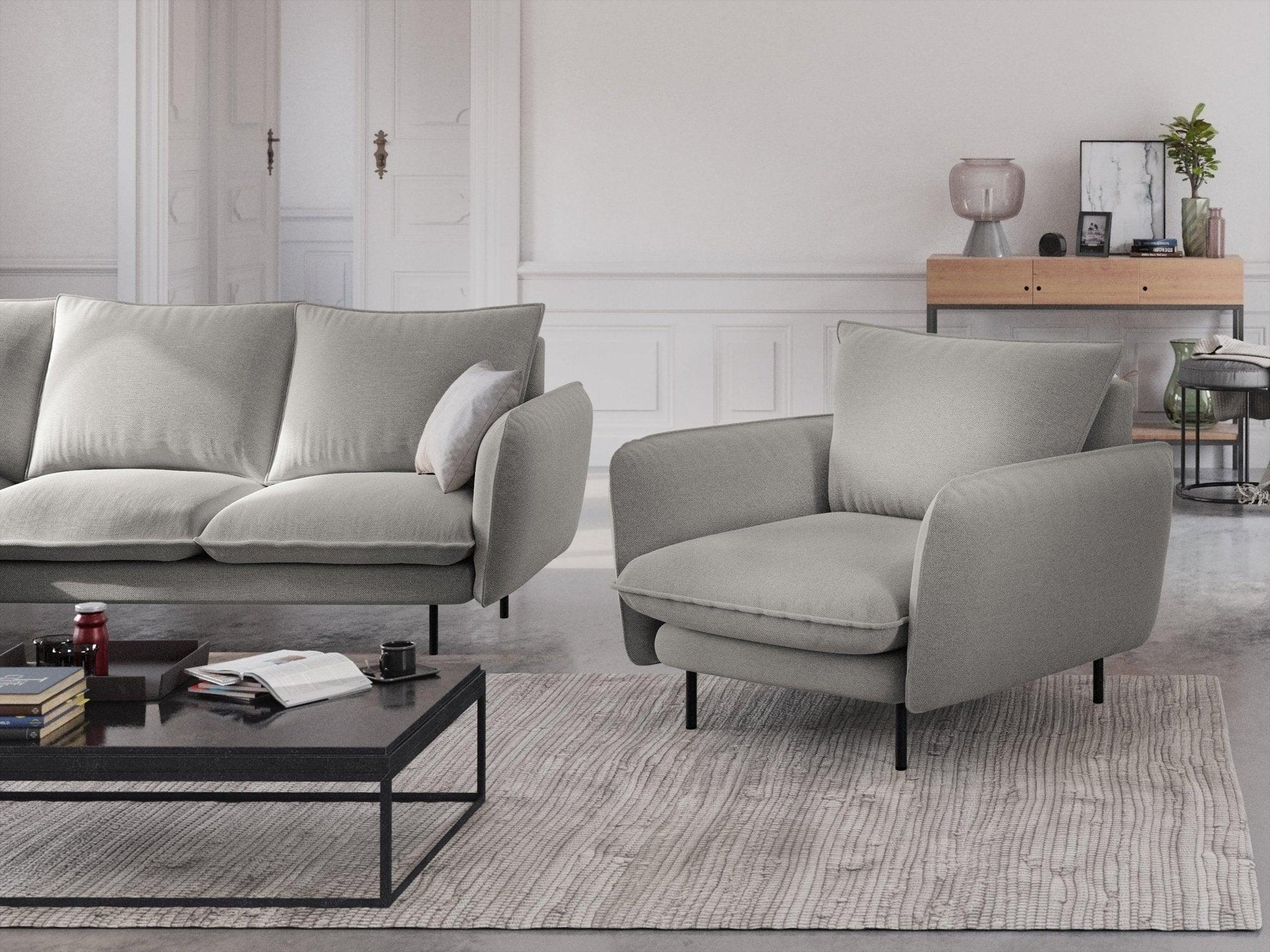 Vienna Jasnoszary armchair with a black base