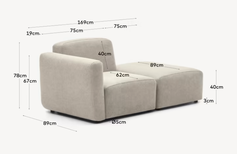 Beige color of a 1-person sofa Neom is a subtlety that adds heat and harmony to the interior. Thanks to the possibility of connecting modules without any difficulties, the NEOM collection focuses on versatility, enabling the adaptation of the sofa to changing needs and preferences.