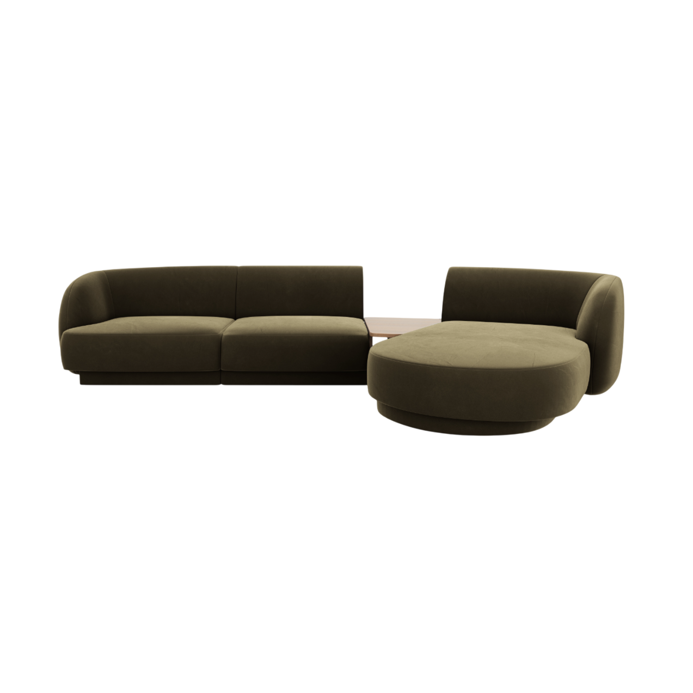 Modular corner sofa with table 3-seater right-facing MILEY green boucle