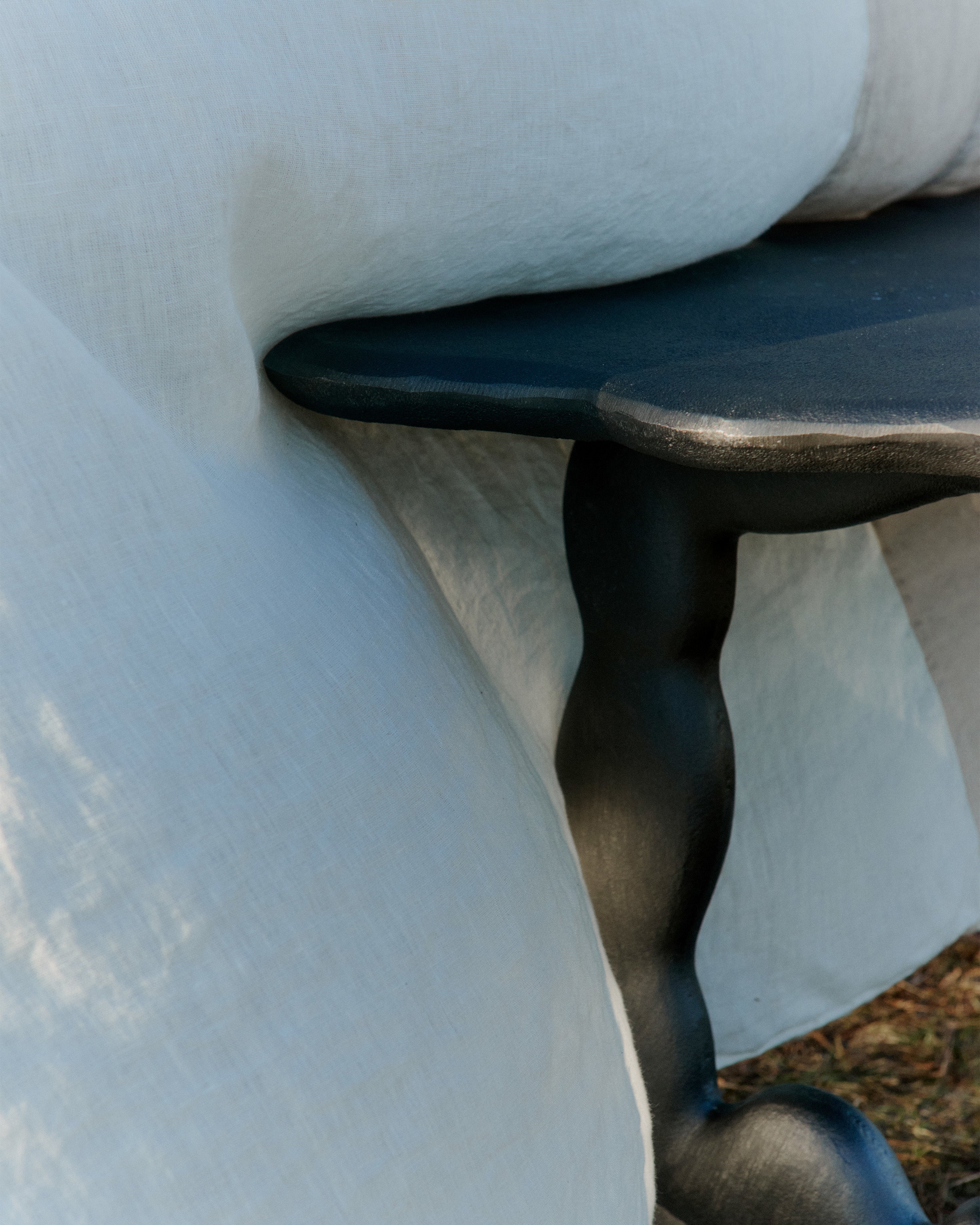 The Dal Piece table is a unique object created in collaboration with Norwegian artist Anna Maria Øfstedal Eng, balancing on the edge between art and functional design. Made entirely from recycled cast aluminum and finished with a black patina, it captivates with its sculptural form inspired by the mountainous landscape of Gudbrandsdalen in Norway. This is a place where a slow stream of water has sculpted hard rock over centuries, creating soft, rounded shapes – and it is this natural process that inspired the design.
