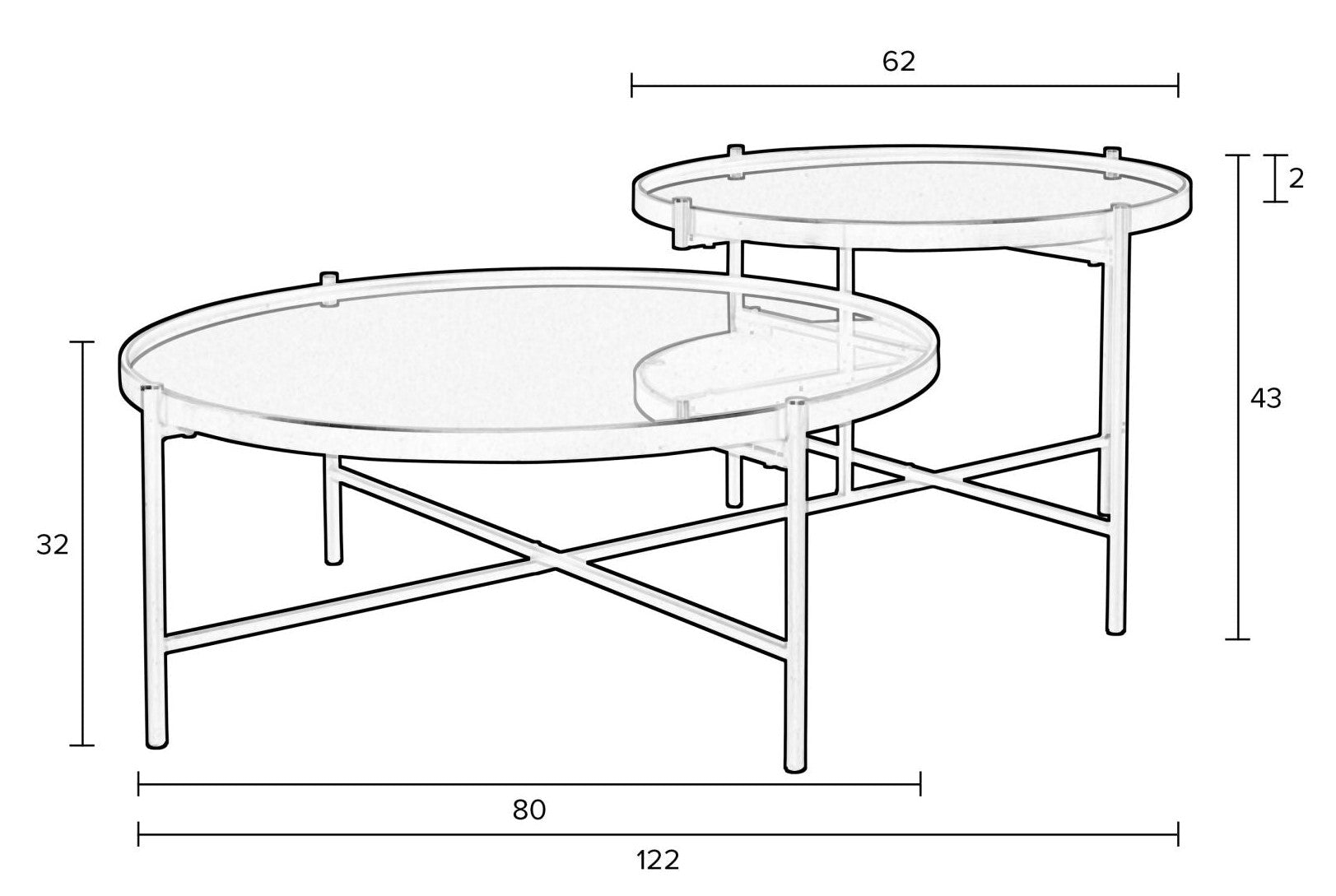 Coffee table Li is an unusual piece of furniture with an original form that impresses with both the appearance and functionality. It consists of two round countertops made of tempered glass in black, resting on a metal frame powder painted black. The frame structure gives the table optical lightness and freshness. Thanks to its raw form, table Li perfectly fits both spacious living rooms and small living rooms.