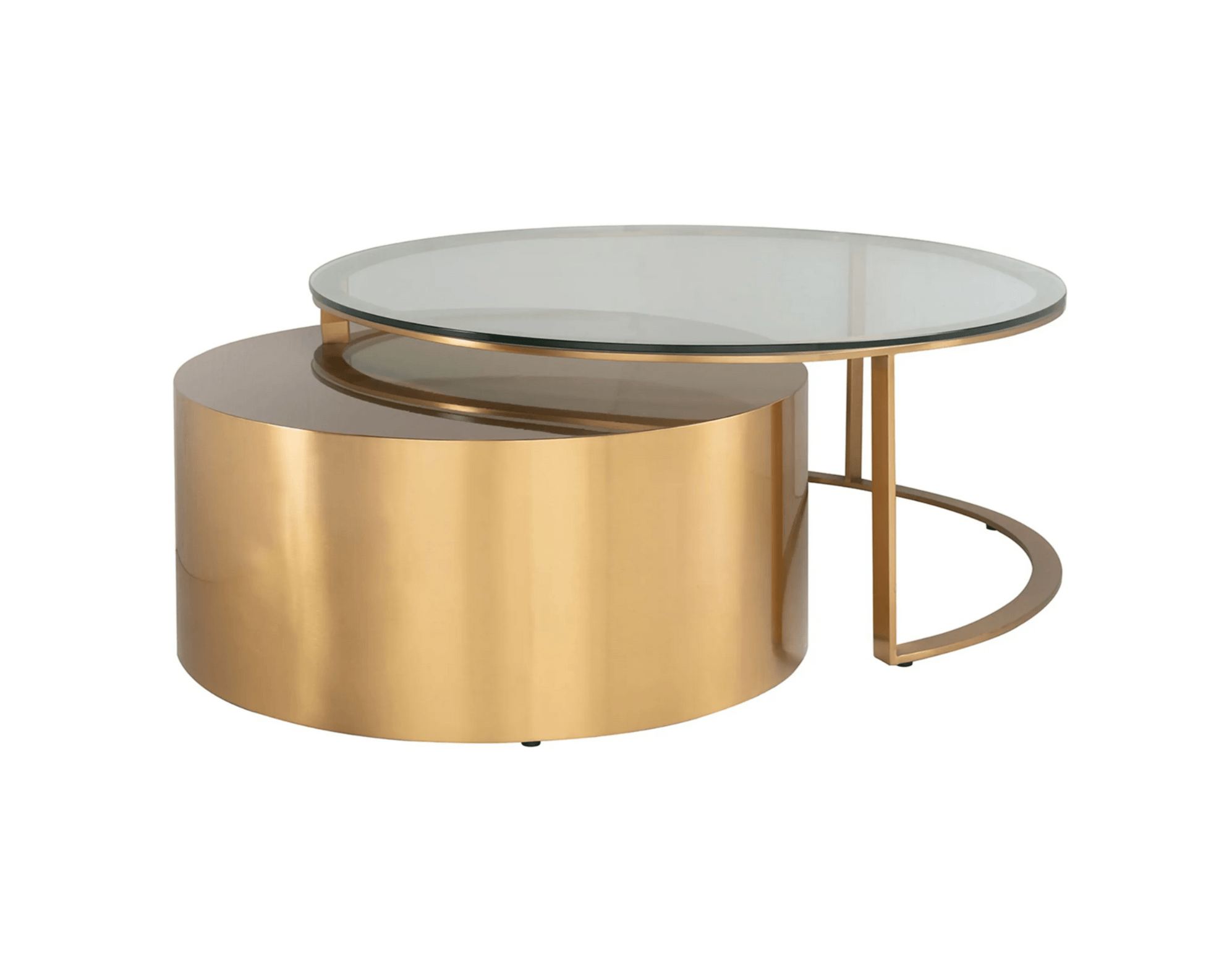 Orlan is a set of two round tables with a sophisticated design. One of these tables takes the form of a waltz made entirely of brushed steel, presenting an elegant golden shade of brass. While the second table, although it retains a round structure, soothes the form of a whole by using a frame made of brass, brushed steel, supplemented by a transparent glass top.