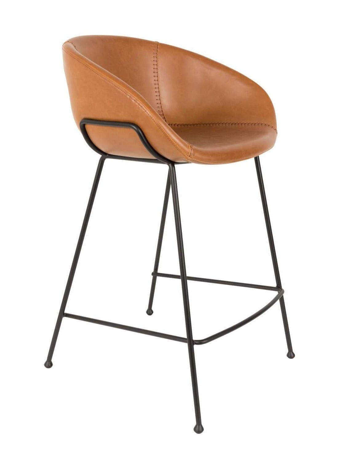 Stołek barowy niski FESTON ekoskóra brązowy Zuiver    Eye on Design