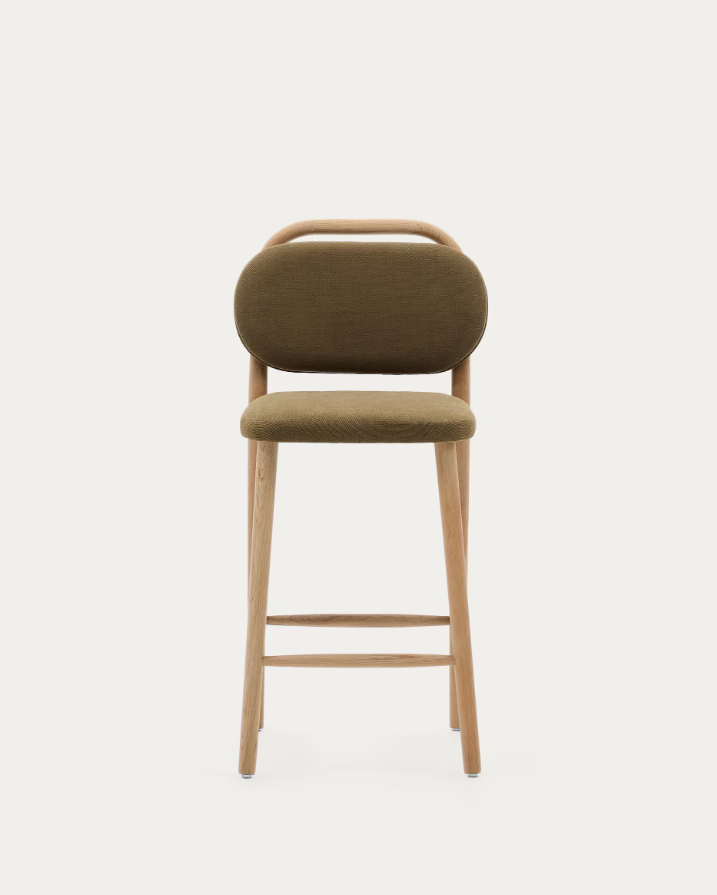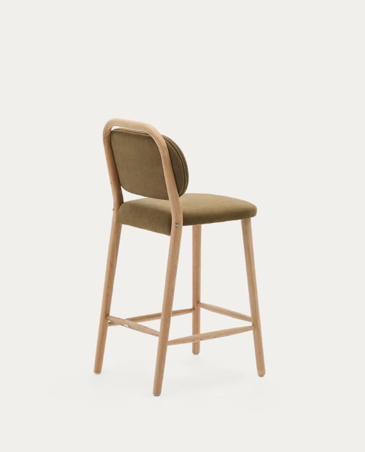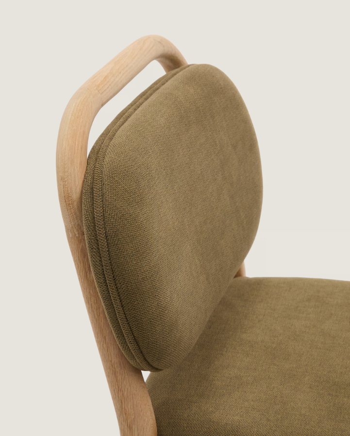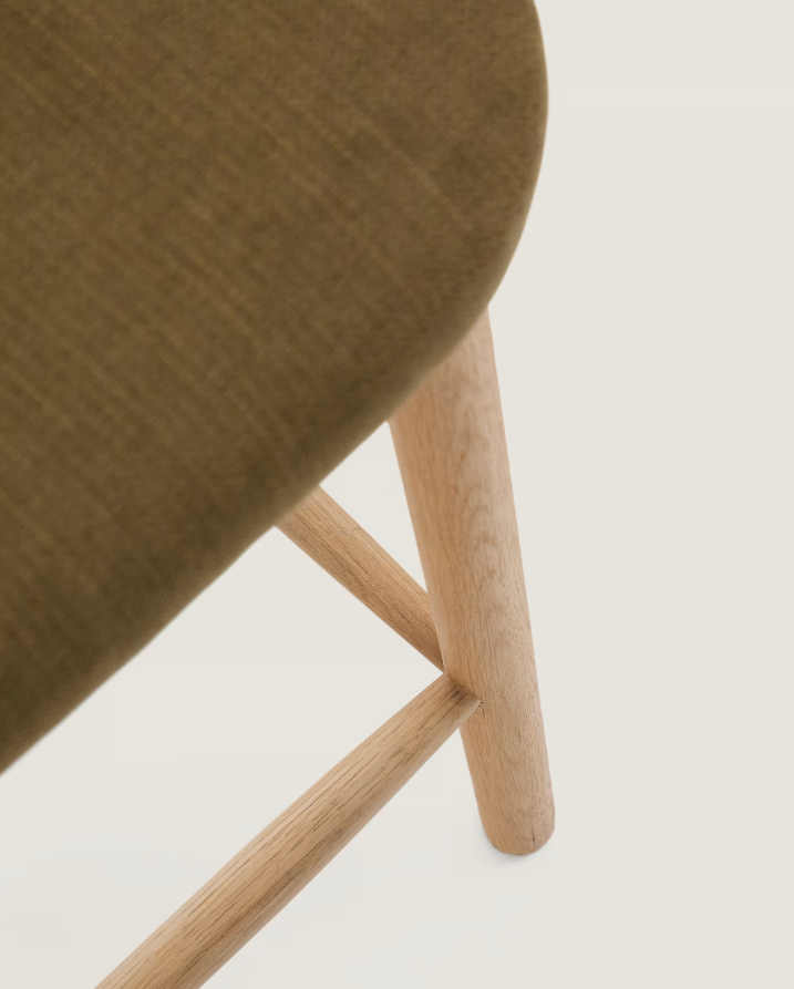 Helda it Handmade hoker From solid beech wood, which combines a timeless design with modern comfort. Its natural oiled finish emphasizes the beauty of wood and ensures the longevity of the furniture. The seat and support have been upholstered with waterproof szenil fabric, thanks to which Helda is not only elegant, but also practical and easy to maintain.