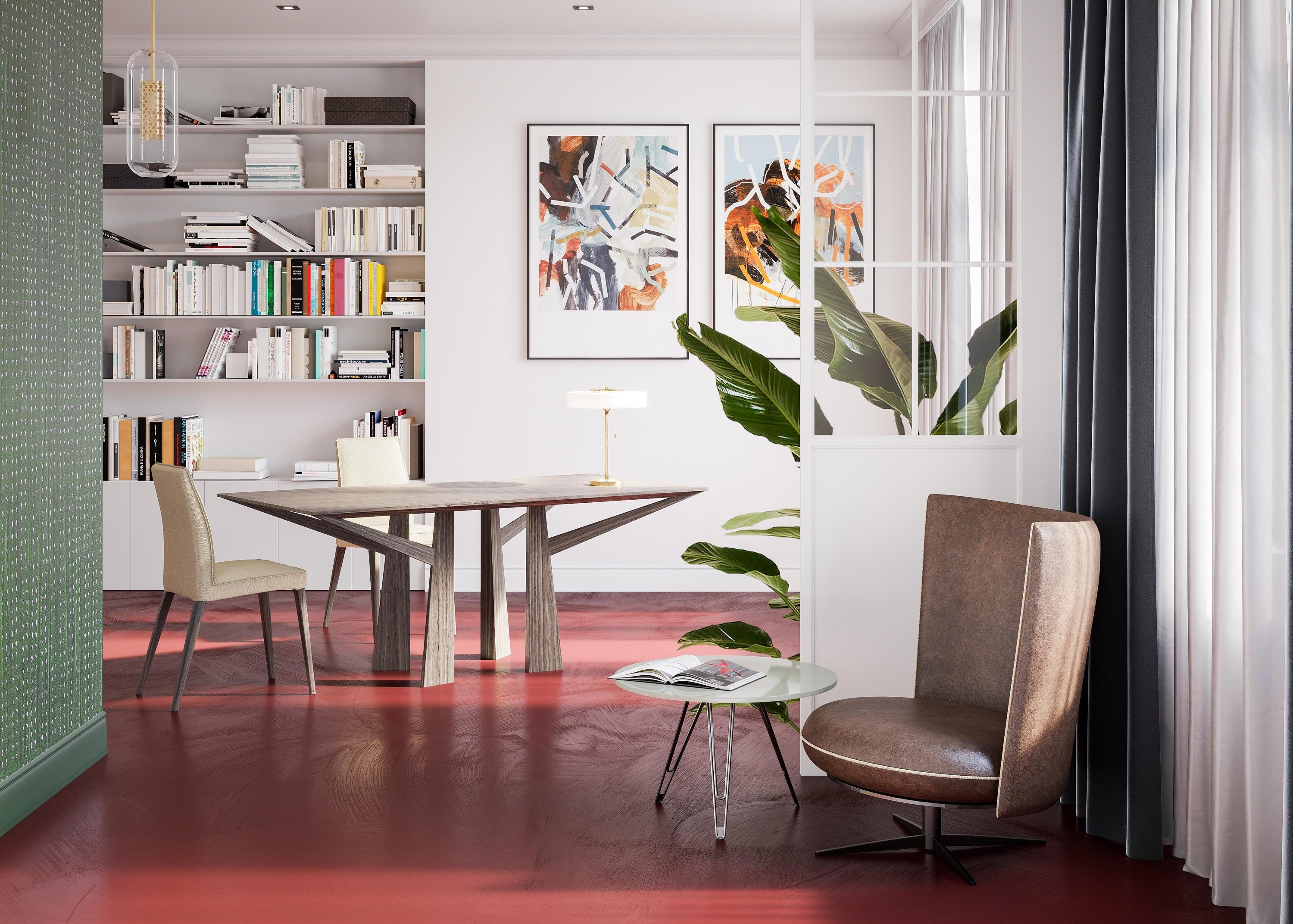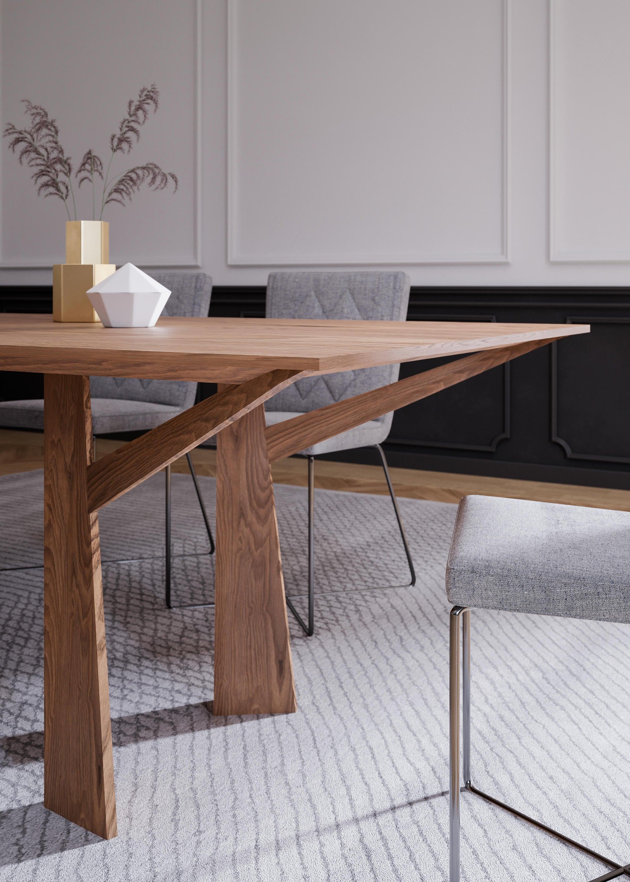 The Branch table top is made of a thick piece of natural wood, which impresses with its characteristic grain drawing and unique irregularities. Each copy has its own story, told by lines and cavities that have been produced over the years. It is like he had the secret of an ancient forest, which seems to be still living in this one unique board.