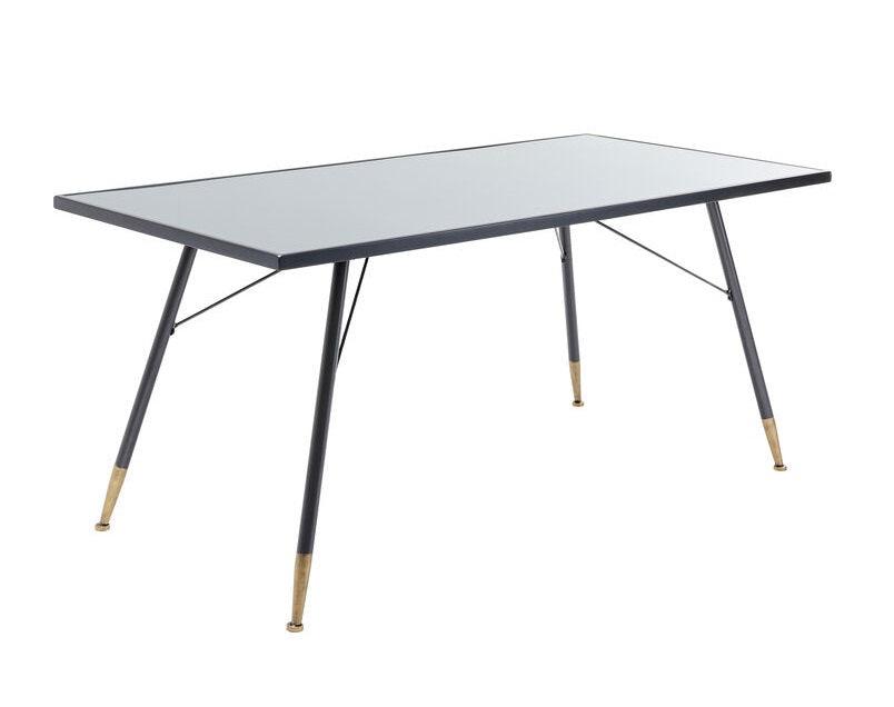 Table In anthracite from the La Gomera furniture collection, he impresses with its free and subdued appearance. The combination of a glass top with a wavy edge and steel legs is extremely effective. The slightly flared steel legs are extremely stable. The brass details on the table's legs give the furniture industrial chic. At the dining table it can sit comfortably up to 4 people, but the glass table is also a timeless classic in the living room. The table top is placed with a black MDF and is not transparent. Thanks to this, the wavy edge of the lower glass of the glass surface is particularly clearly visible.