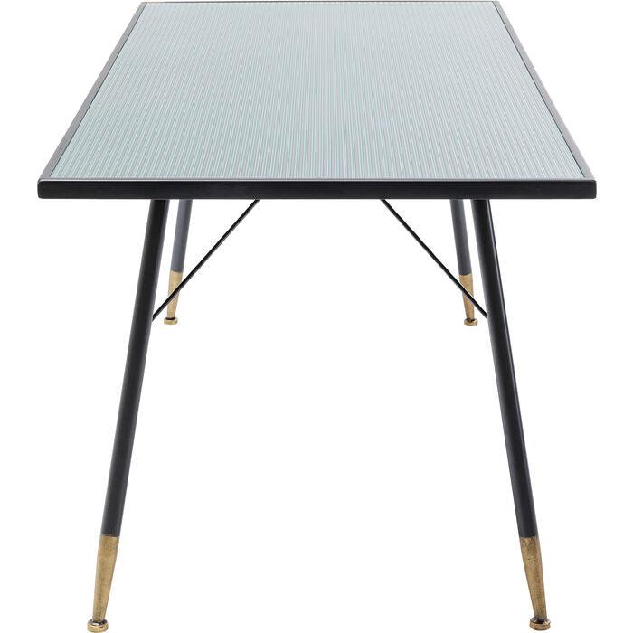 A table with a glass top and a graphite frame made of metal, versatile for the living room, dining room or office. Dining table with the "WOW" effect thanks to the corrugated countertop and retro design.