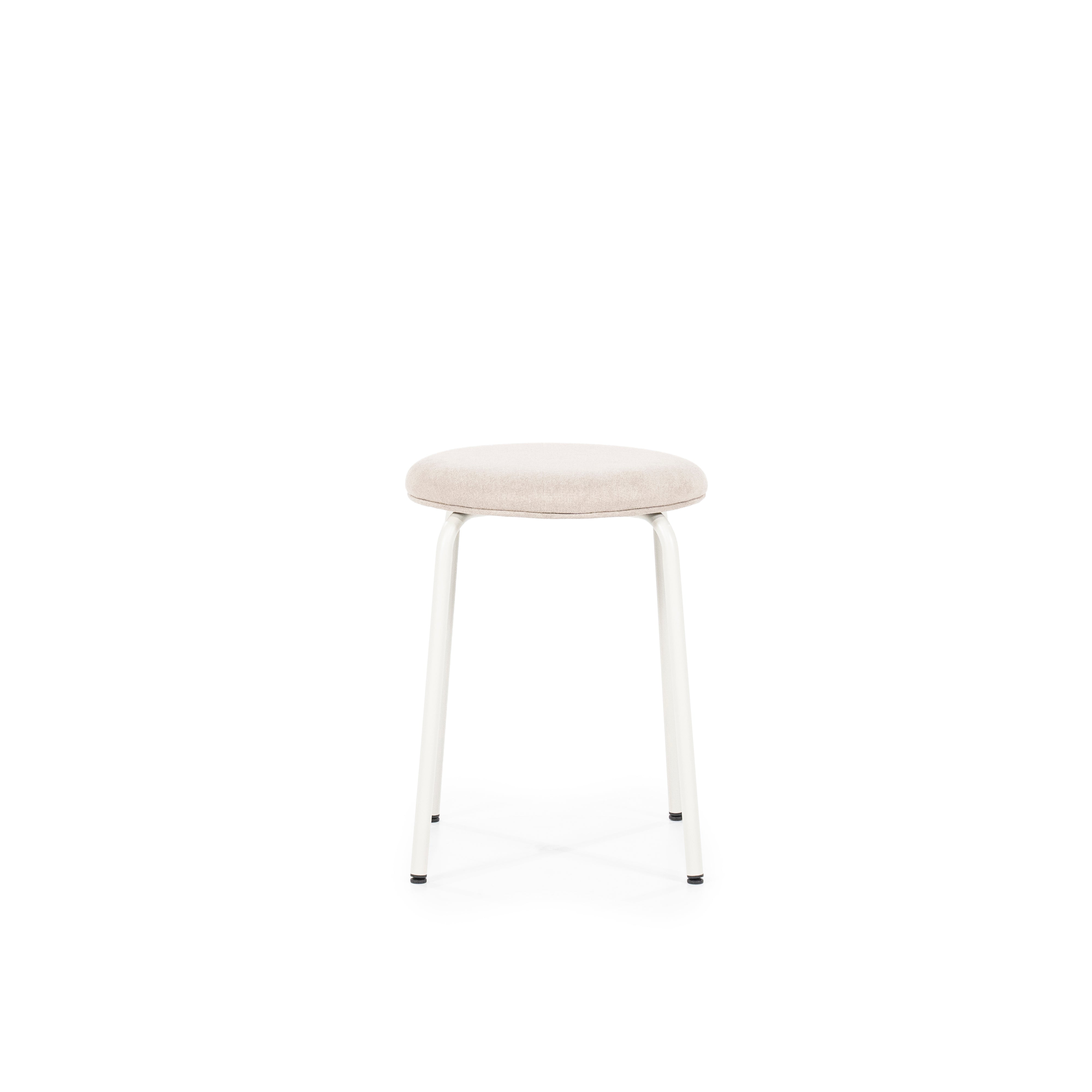 Skola Stool is a simple yet functional piece of furniture that combines a classic shape with a modern finish. The round seat upholstered in fabric is set on slender metal legs, which give it lightness and stability. Thanks to its compact dimensions, the stool is suitable for use in the dining room, kitchen, as well as in office or public spaces.