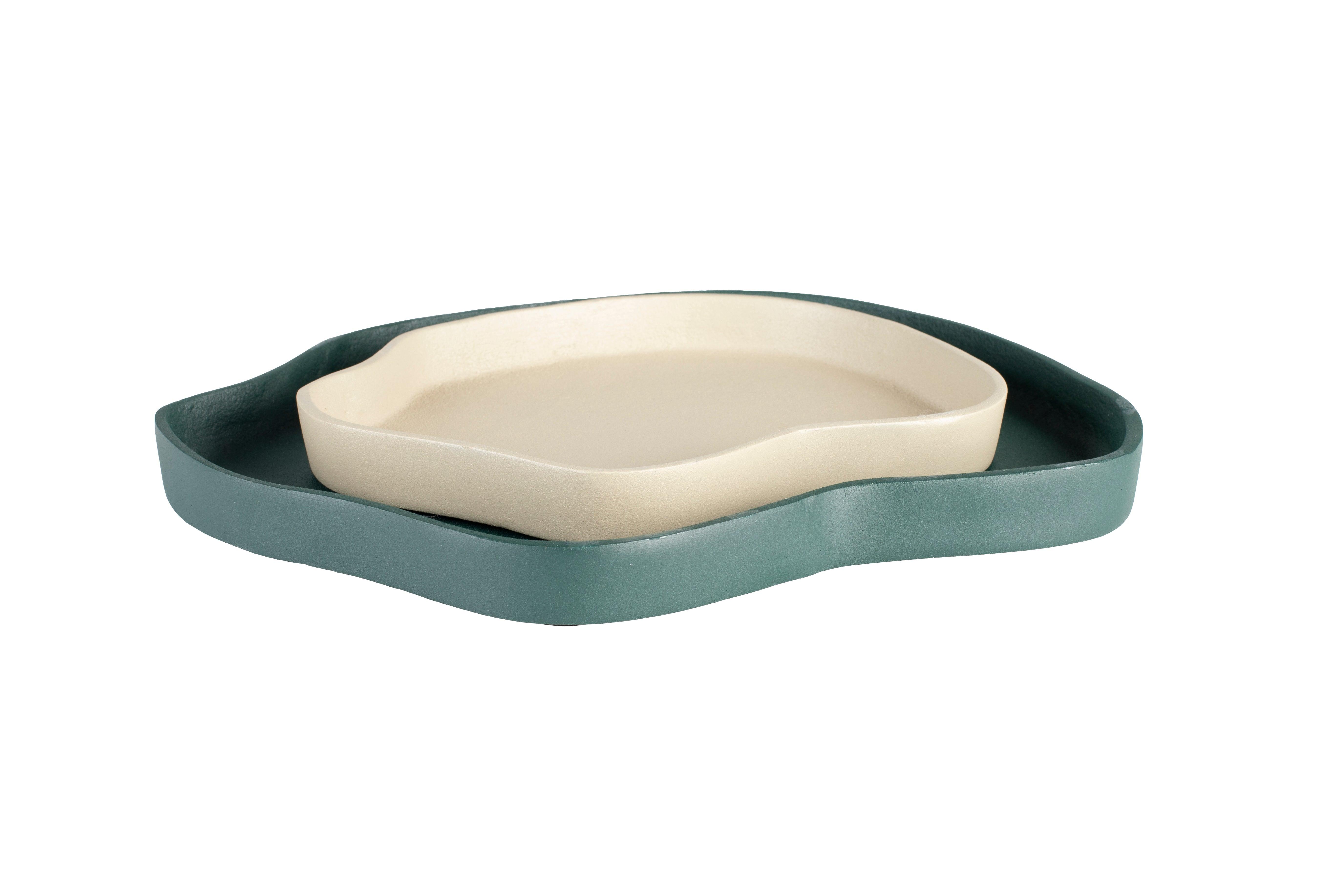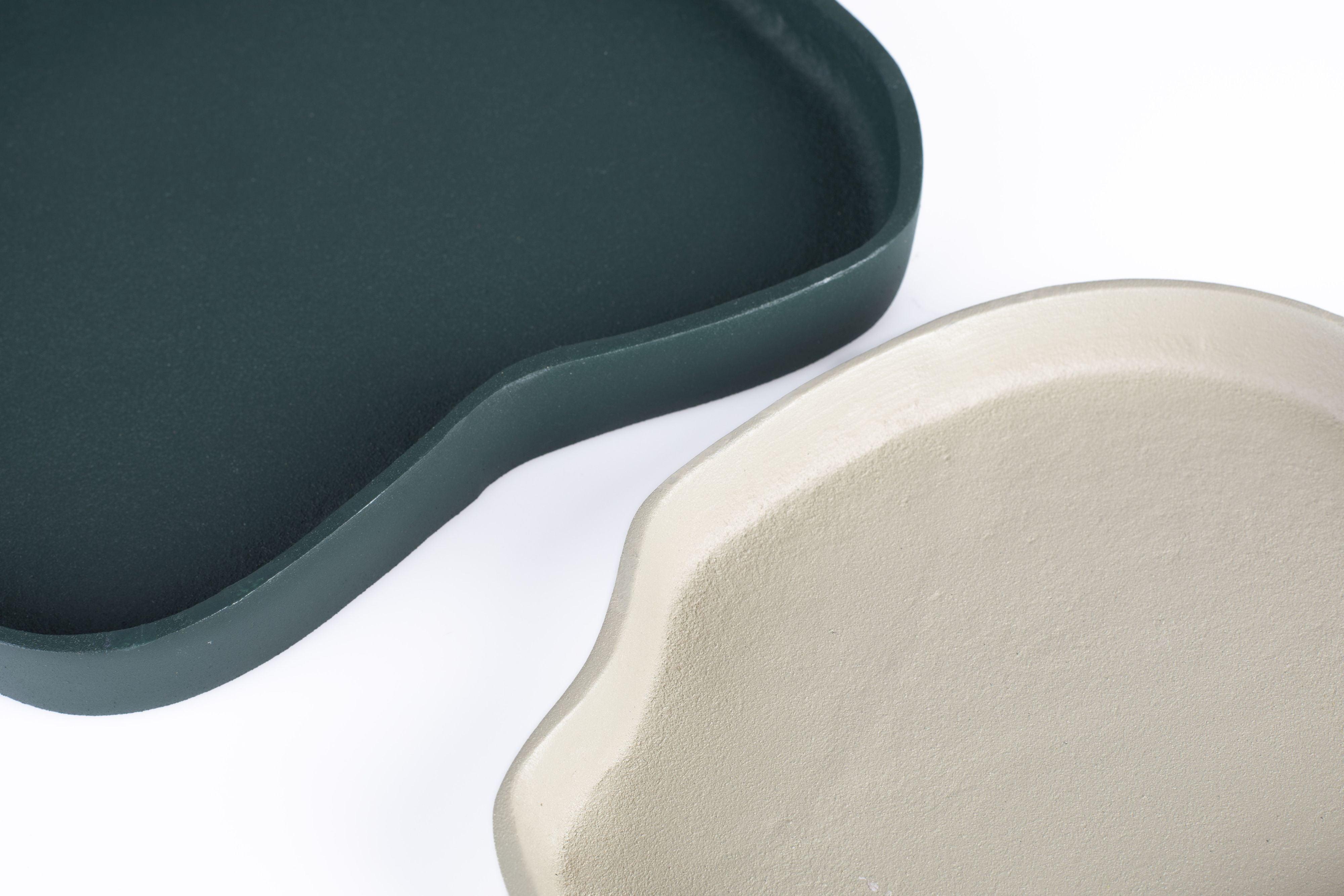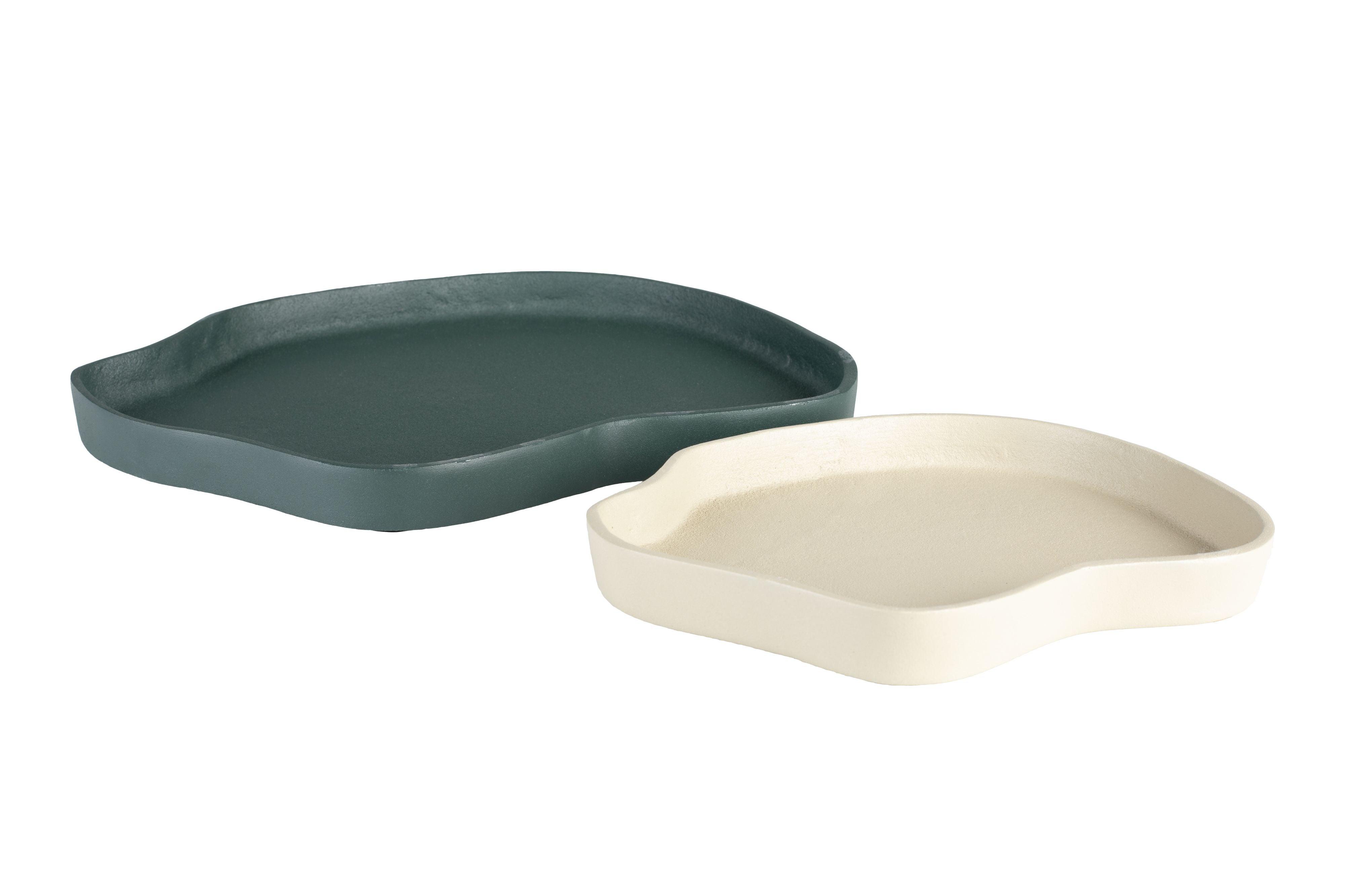 TAC set Revolt consists of two pieces of different sizes. One tray It is in an elegant green color and the other in a subtle beige shade. The trays are made of brushed aluminum and covered with a powder coating, which gives them a matte finish. Available in various color sets that can be easily adapted to your interior.