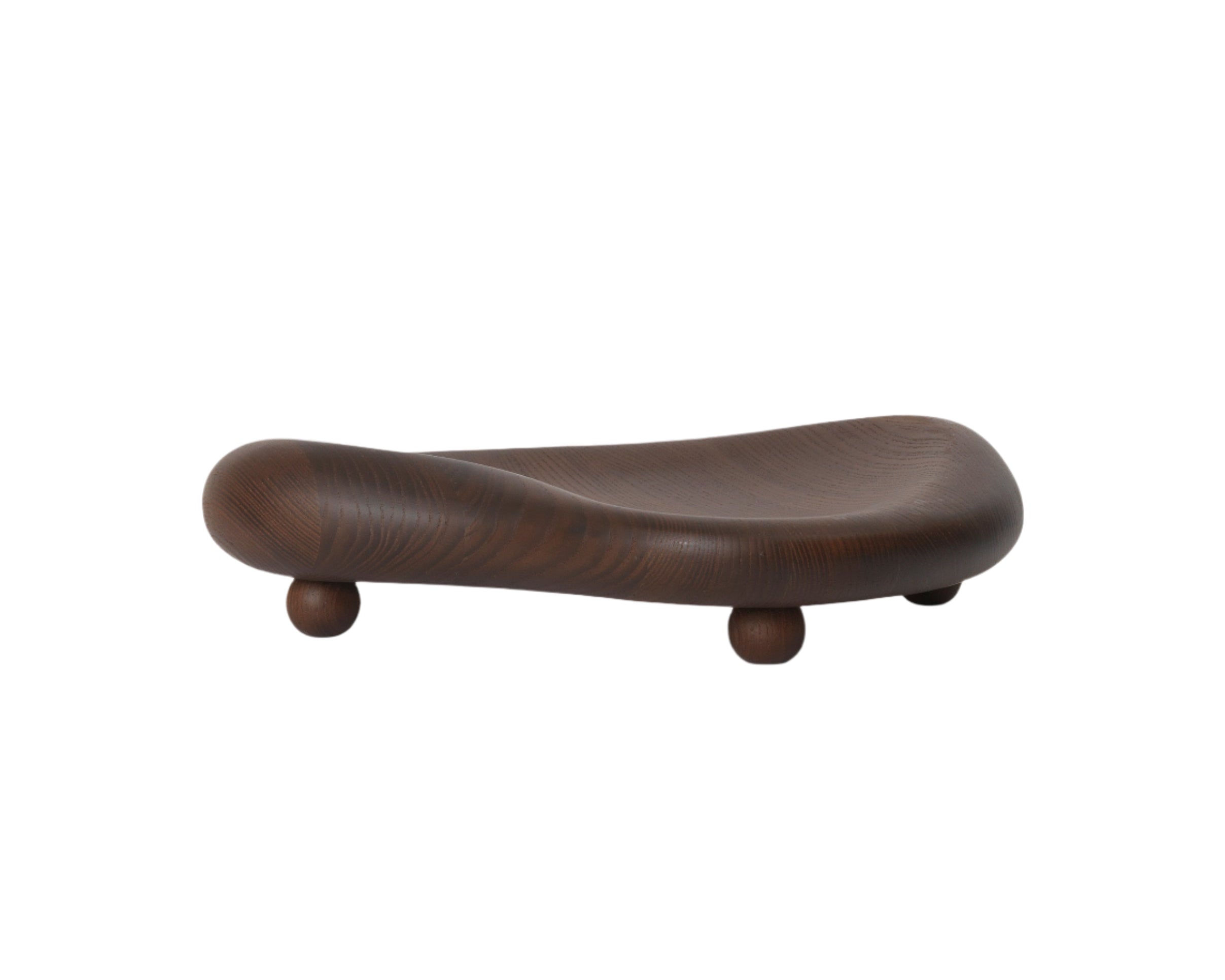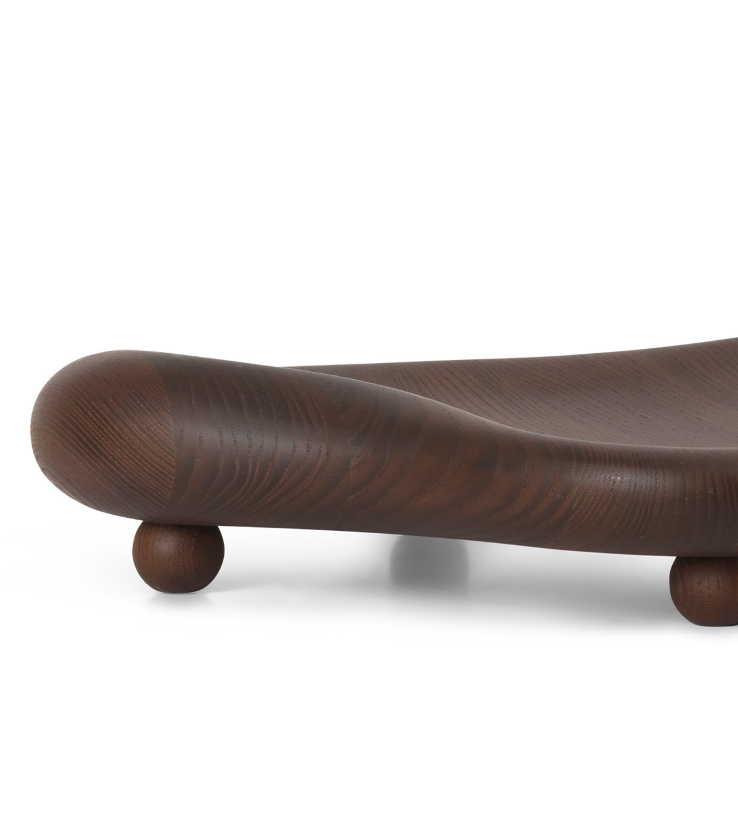 The Cairn Centrepiece is a unique decorative tray with a sculptural character, distinguished by its soft curves and carefully shaped details. Made from solid ash wood with FSC™ certification and finished through a carbonization process, it radiates natural beauty and elegance. With its wide, recessed form and four spherical legs resembling wooden pearls, it serves both a practical and decorative function.