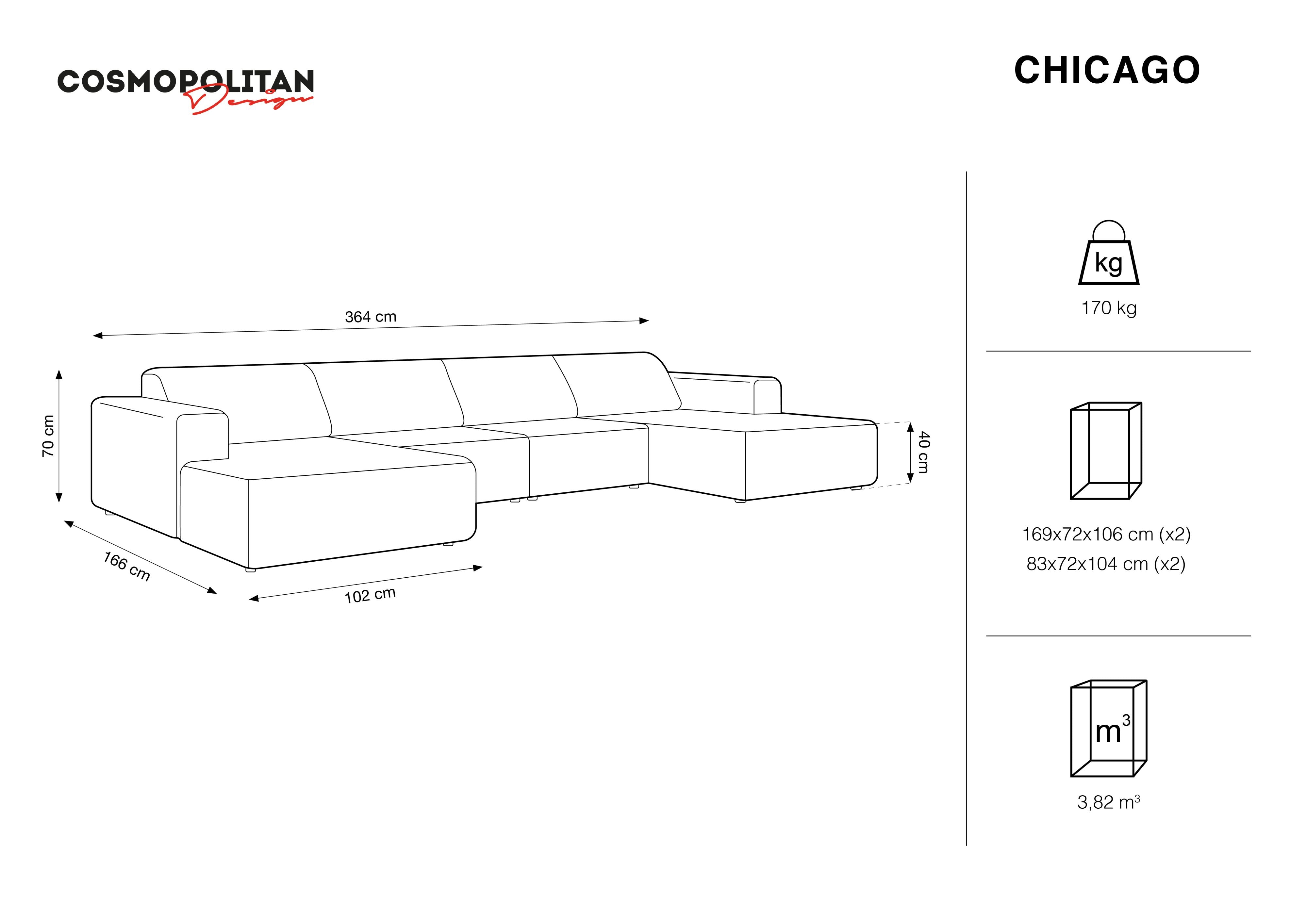 Sofa panoramiczna 6-osobowa CHICAGO beżowy szenil Cosmopolitan Design    Eye on Design