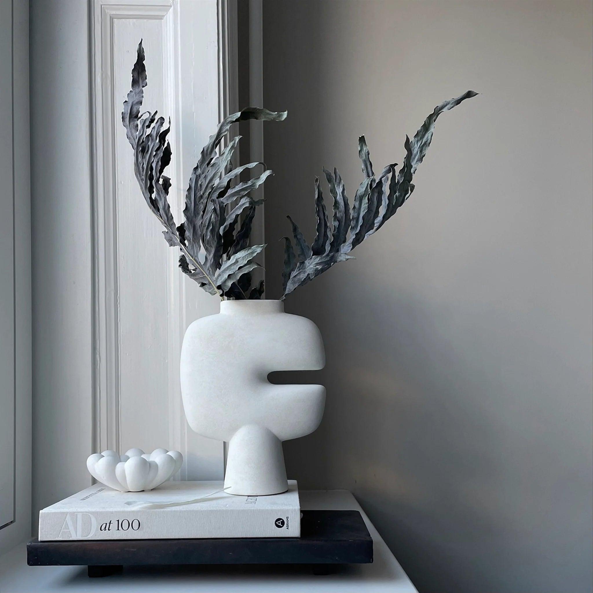 Like open lips on pedestals, masks are a beautiful shape in calm, soothing and dusty colors of terracotta and gray. Because it is a natural, hand -glazed product, colors may differ slightly.