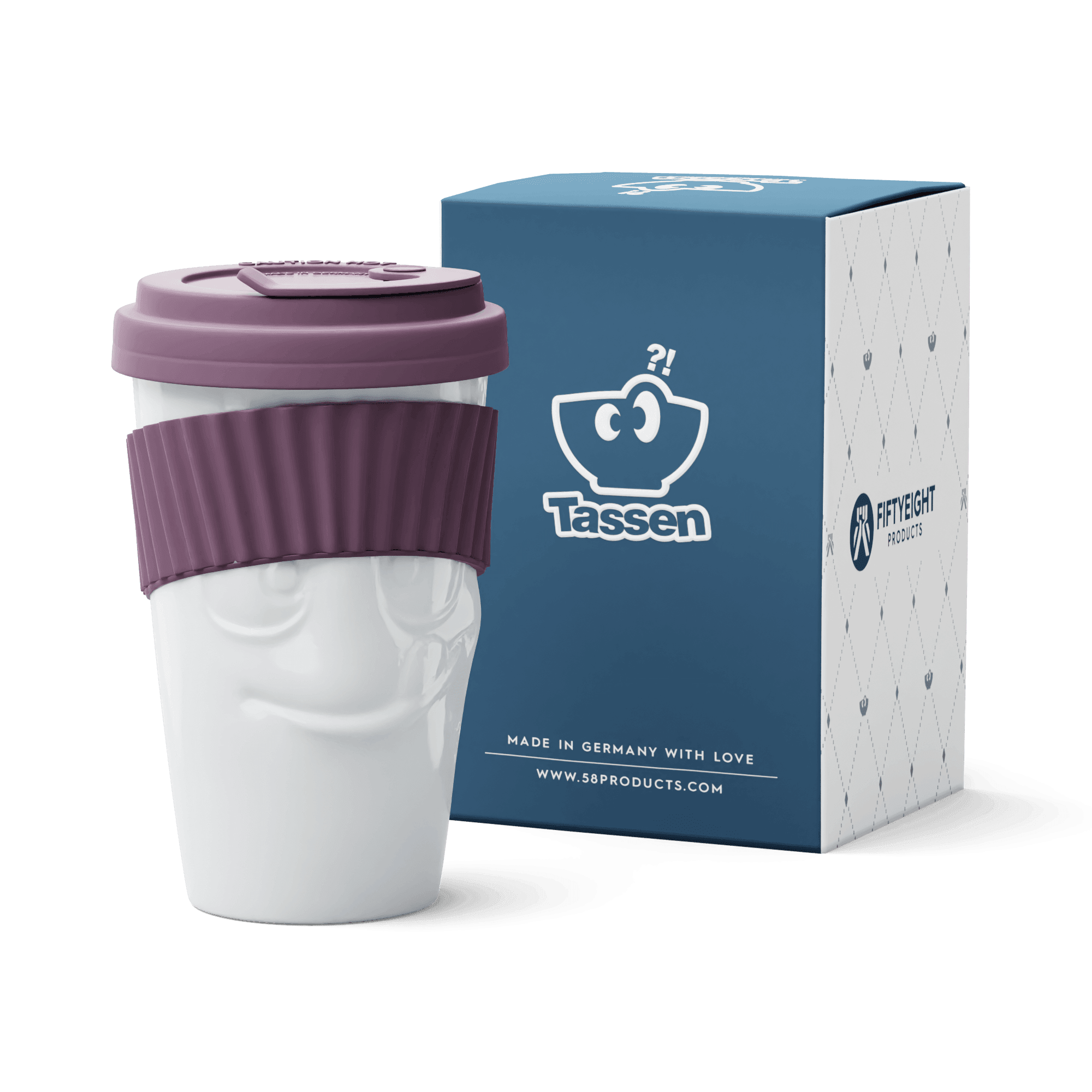 Cup with lid White tasty with an intense amaranth accent is a practical dish that impresses with a hunger grimace. This cup is an ideal travel companion.