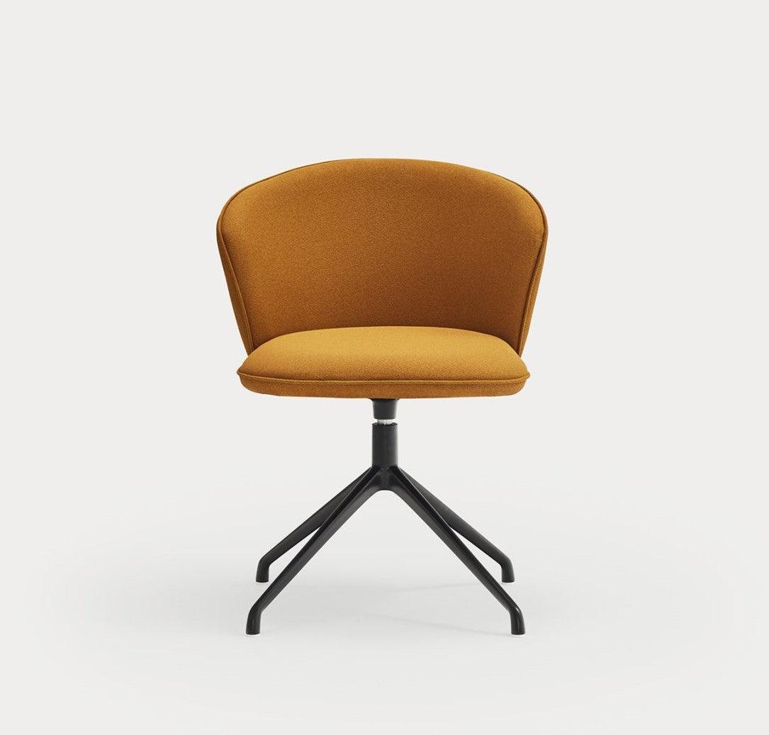 Chair Add created from mustard fabric on a black base is not only an elegant element of equipment, but also a symbol of comfort and ergonomic support. When designing this chair, the priority was to provide the user with maximum convenience and adaptation to his needs. The completely upholstered backrest gently bends around the body, perfectly adapting to natural curves, which allows free movement and change of position. The black base with four legs ensures stability and allows full rotation, which makes the chair an ideal choice for conference rooms, offices and public spaces.