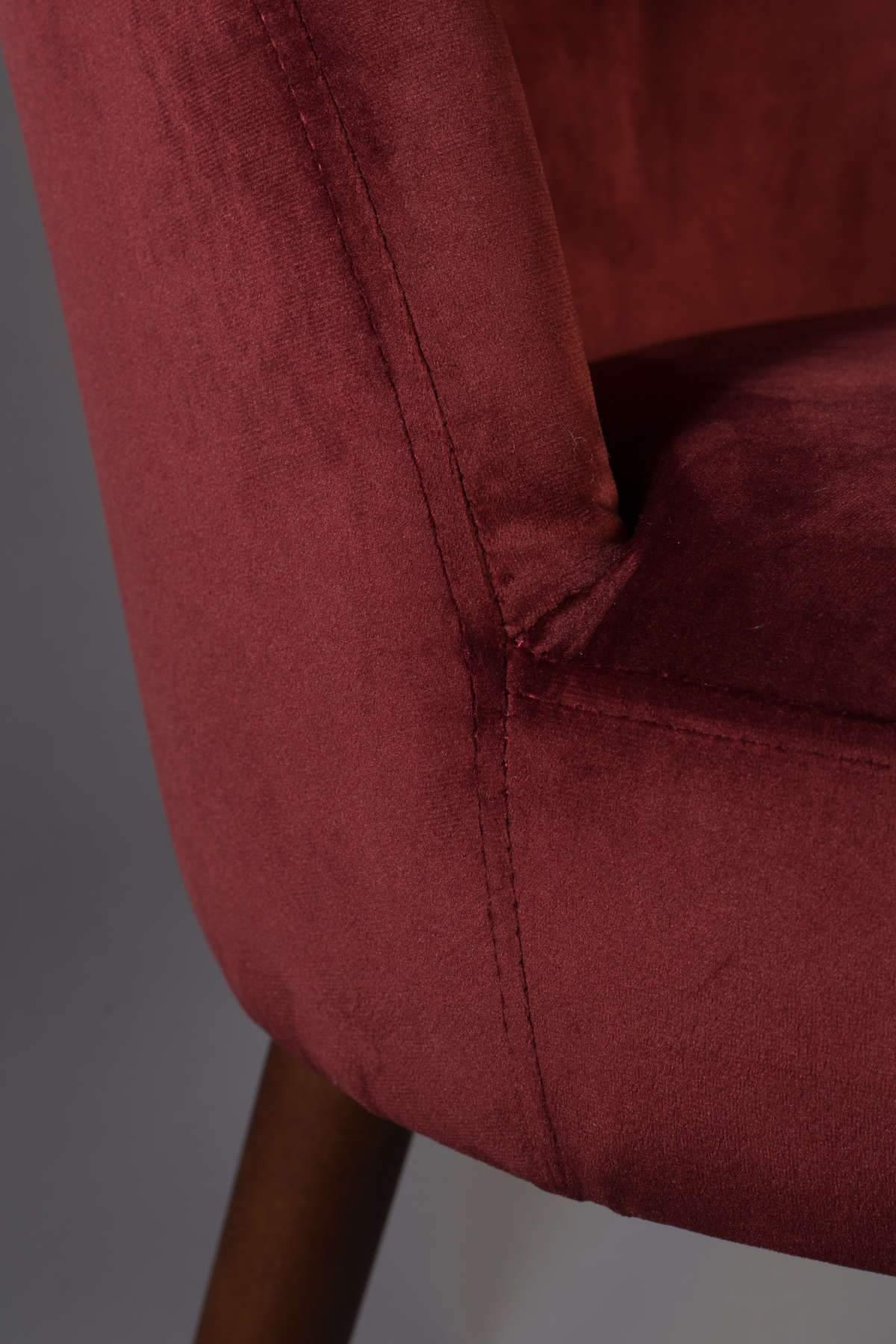 Chair From the Barbara collection is a classic model in the style of Mid-Centure Modern, which is distinguished by excellent design and exceptional convenience of use. Barbara has a specially rounded backrest, which makes sitting on this model even more pleasant. The chair was made of solid beech wood in a dark color, as well as high -quality red fabric, which not only looks great, but also is pleasant to the touch. The Barbara chair is a timeless element that will work in both classic and more modern arrangements. It will be a great addition to the dining room or living room and will provide exceptional comfort of use.