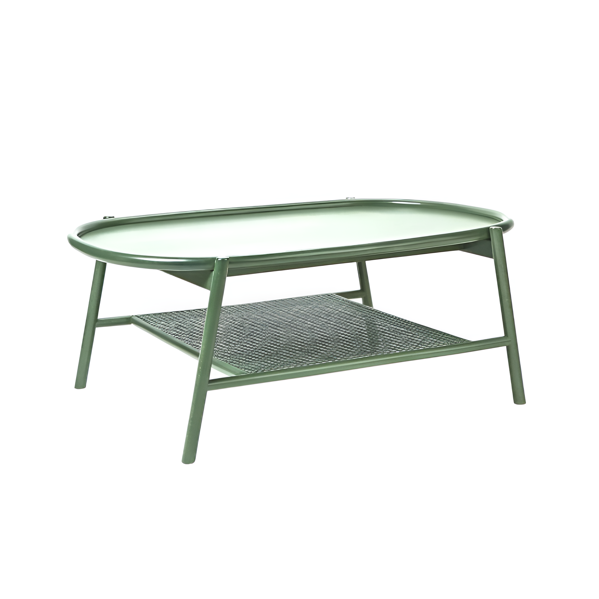 Coffee table Drum is an elegant piece of furniture that harmoniously combines vintage style with modern lightness. It is distinguished by a bent frame made of high quality beech wood, which gives it a subtle and sophisticated character. The lower shelf from the natural rattan mat adds warmth and coziness to the interior, creating an attractive contrast with the minimalist form of the countertop.