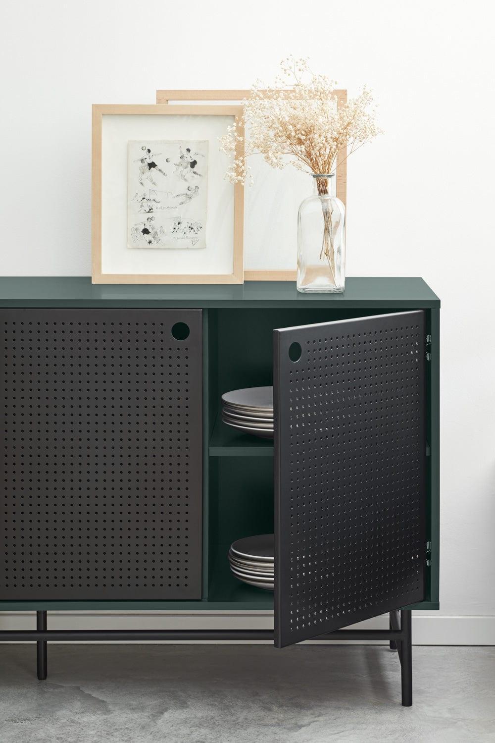 Dresser Punto is the perfect solution for all lovers of classic combined with a note of nonchalance. Thanks to the use of perforated metal, punto has gained Characteristic, loft atmosphere. The dark green color warms up significantly The whole project making it unique and cozy.